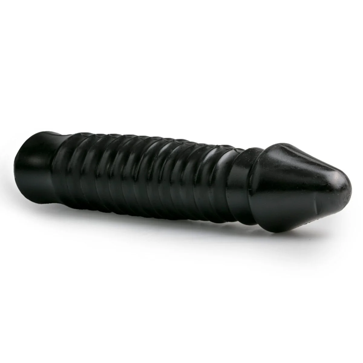 Productinformatie "All Black - Grote Dildo Met Geribbelde Schacht - Zwart"