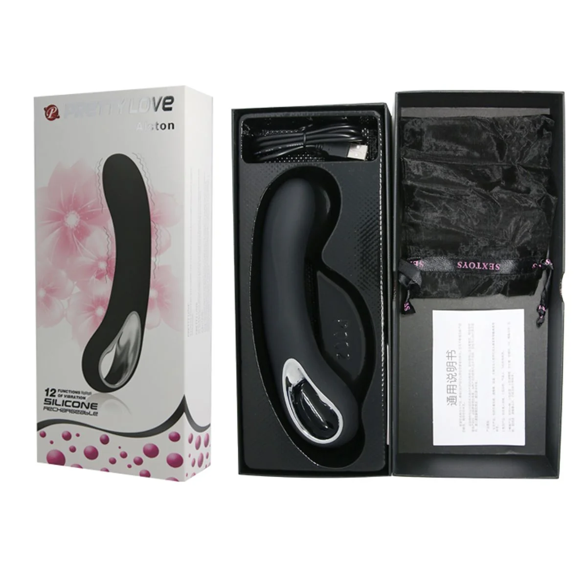 Deze Alston vibrator met 12 krachtige vibratiestanden heeft een gebogen schacht voor een goede G-spot stimulatie. Deze vibrator heeft een handig handvat waardoor hij prettig in de hand ligt. Hij is bovendien makkelijk op te laden met de bijgeleverde USB-kabel. Gebruik de Alston gerust onder de douche of in bad want hij is waterproof.