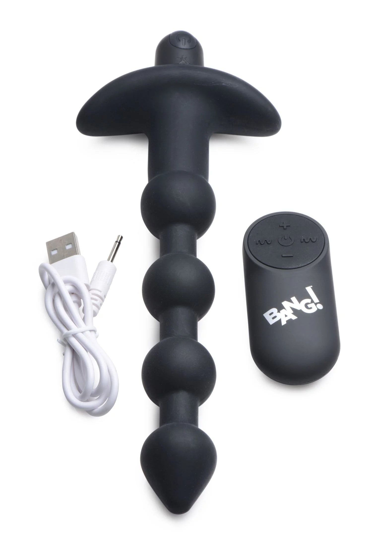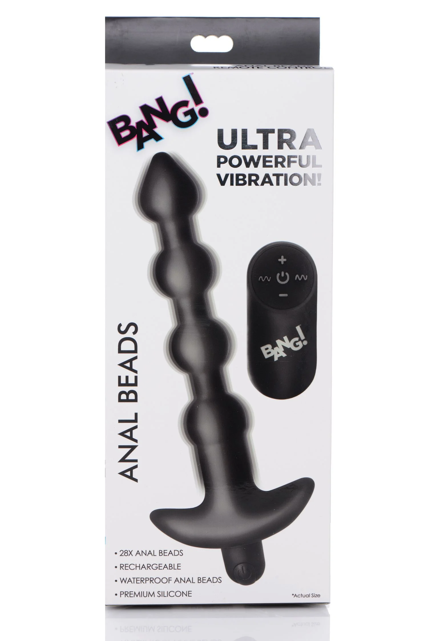Productinformatie "BANG! - 28X Vibrerende Silicone Anaalkralen met Afstandsbediening - Zwart"