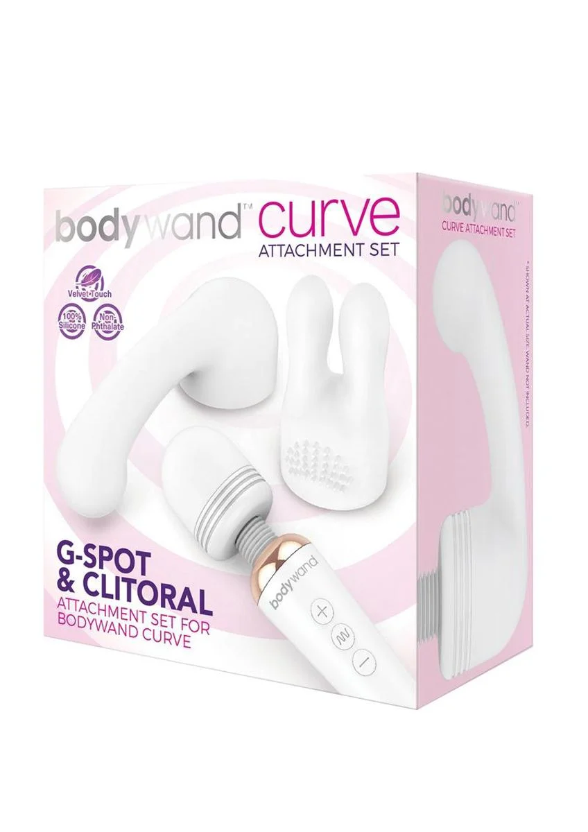 Verander je Bodywand wand vibrator in een handomdraai om tot een krachtige G-spot vibrator! Deze opzetstukken set maakt het mogelijk meer uit je wand vibrator te halen. Kies voor een G-spot vibrator of gebruik het opzetstuk met oortjes voor meer sensatie tijdens uitwendige stimulatie van plekken zoals de tepels, clitoris, balzak, penis en meer. Beide opzetstukken zijn gemaakt van zacht siliconen. Dit voelt erg fijn aan op het lichaam en buigt mee tijdens gebruik. Maat G-spot stimulator: Lengte: 12 cm Invoerdiepte: 7 cm Max. diameter: 2.8 cm Min. diameter: 2 cm Binnen diameter: 3 cm Maat clitorisstimulator: Lengte: 7.5 cm Breedte: 4.5 cm Binnen diameter: 3 cm