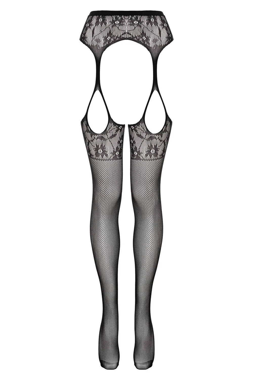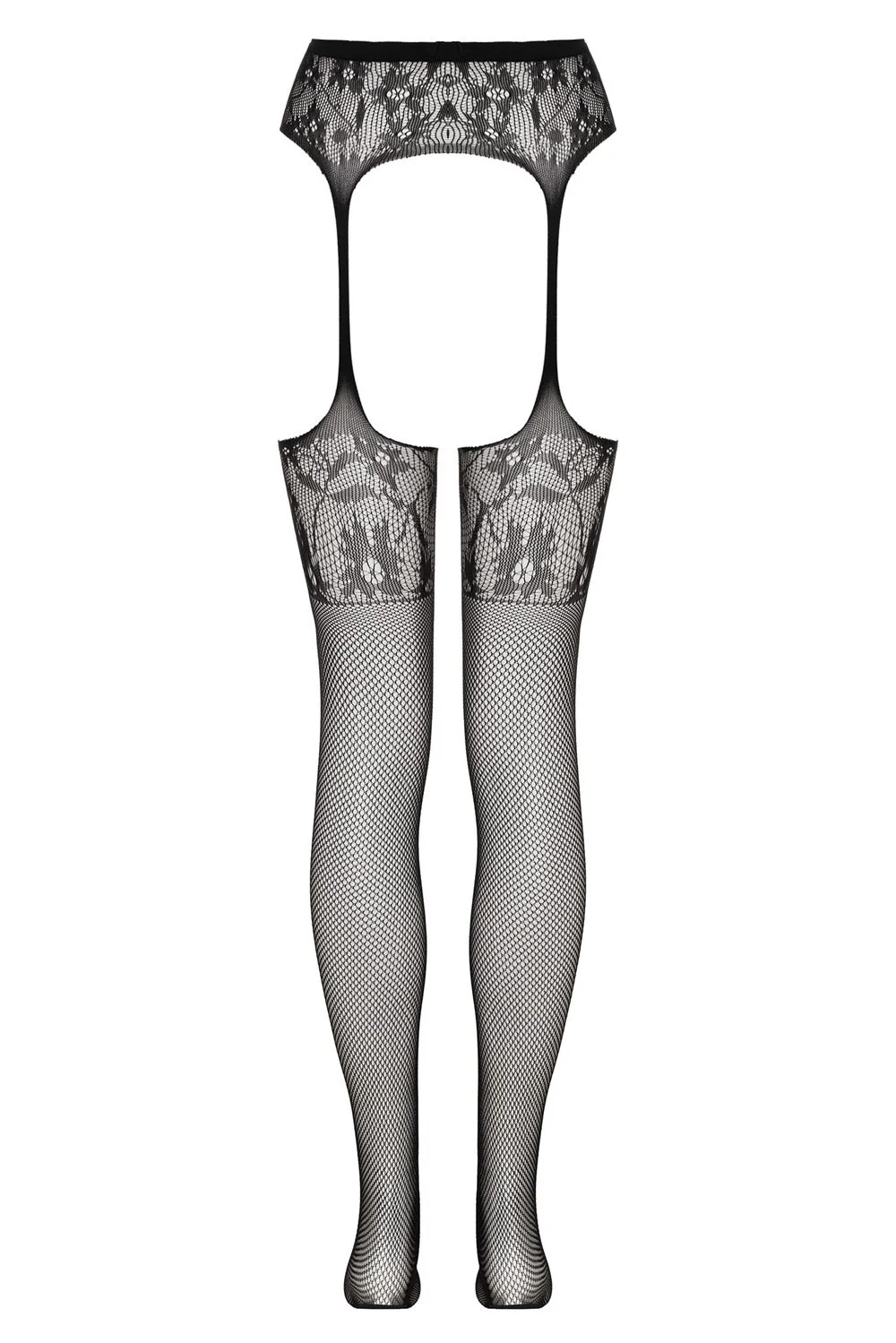 Panty gemaakt van fijn net-materiaal, met kanten accenten en een vastzittende jarretelgordel in kant-optiek. Gemaakt van een super elastische kwaliteit, hierdoor heeft de panty een ruim pasbereik. Mooie pasvorm.