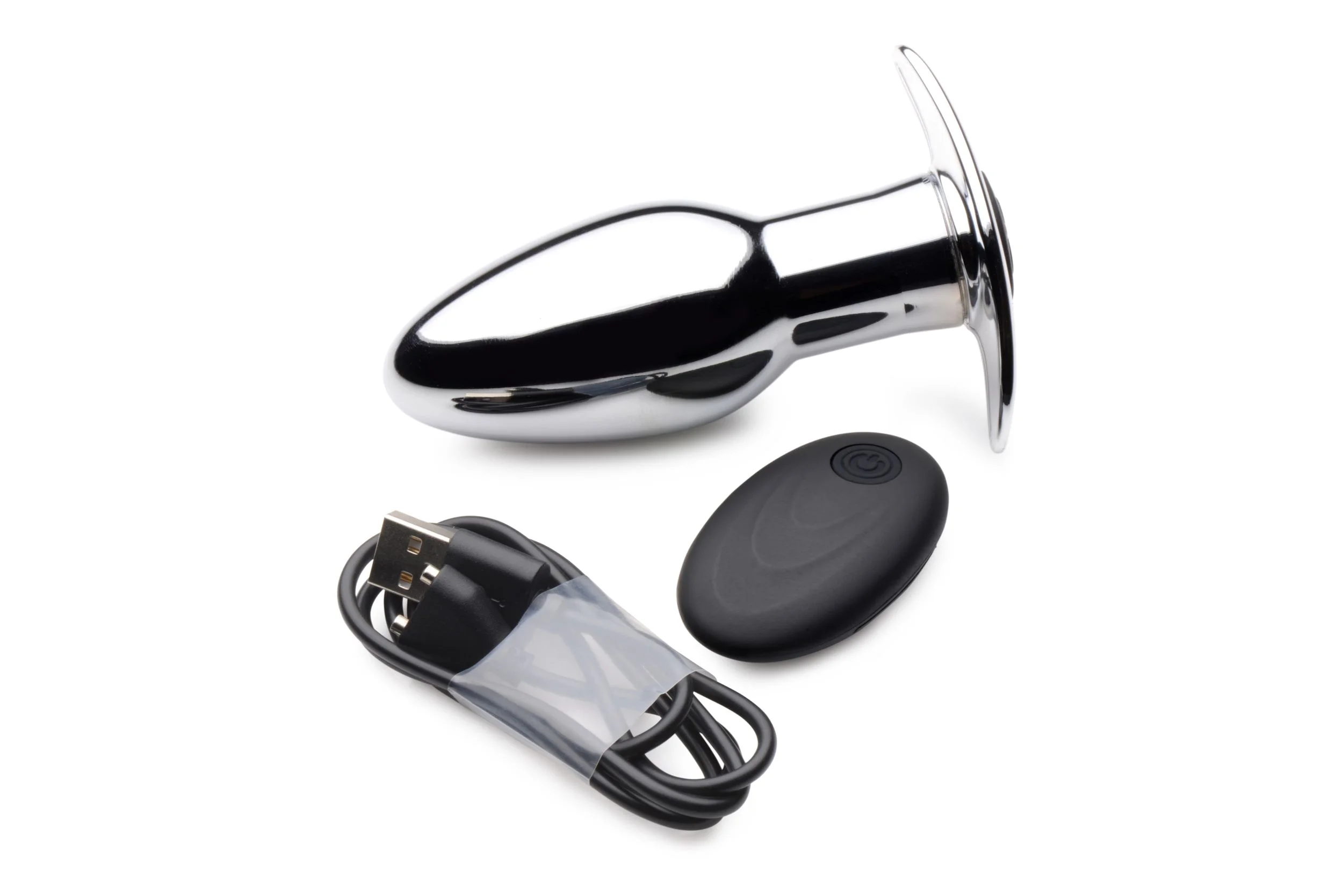 Productinformatie "Chrome Blast Oplaadbare Buttplug Met Afstandsbediening - Klein"