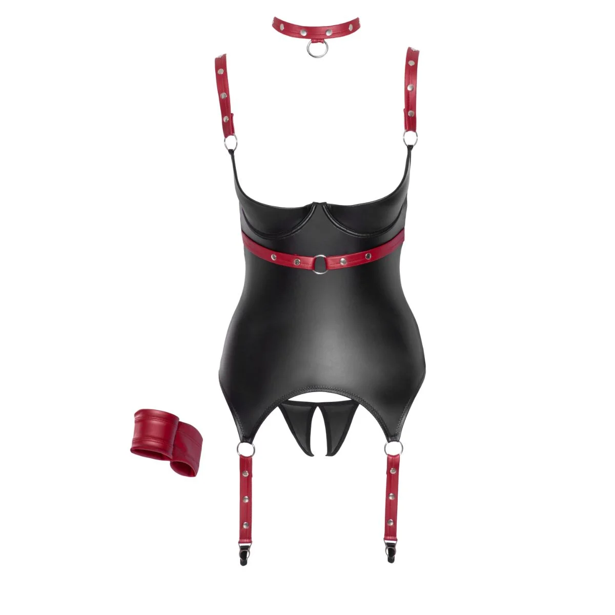 Cottelli Bondage – Kruisloze Set met Basque & String – Zwart