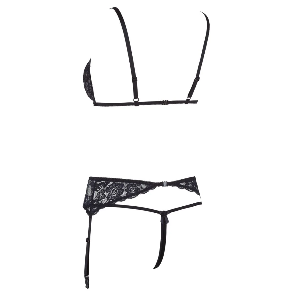 Productinformatie "Cottelli Collection - 3-Delige Jarretelset Met Open Cup & Open Kruis"