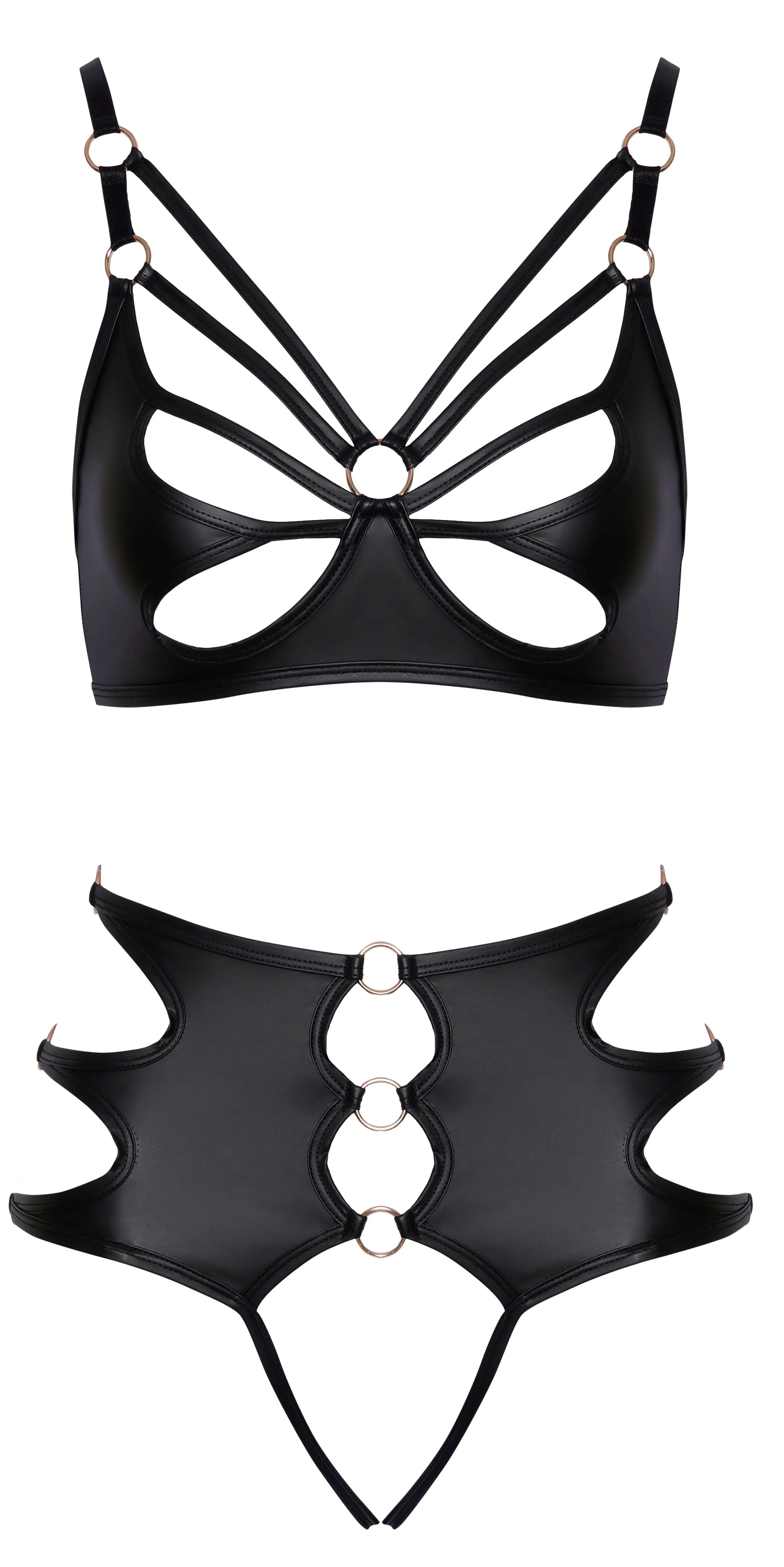 Cottelli LINGERIE – Soft Bra & Crotchless Panty Set – Zwart
