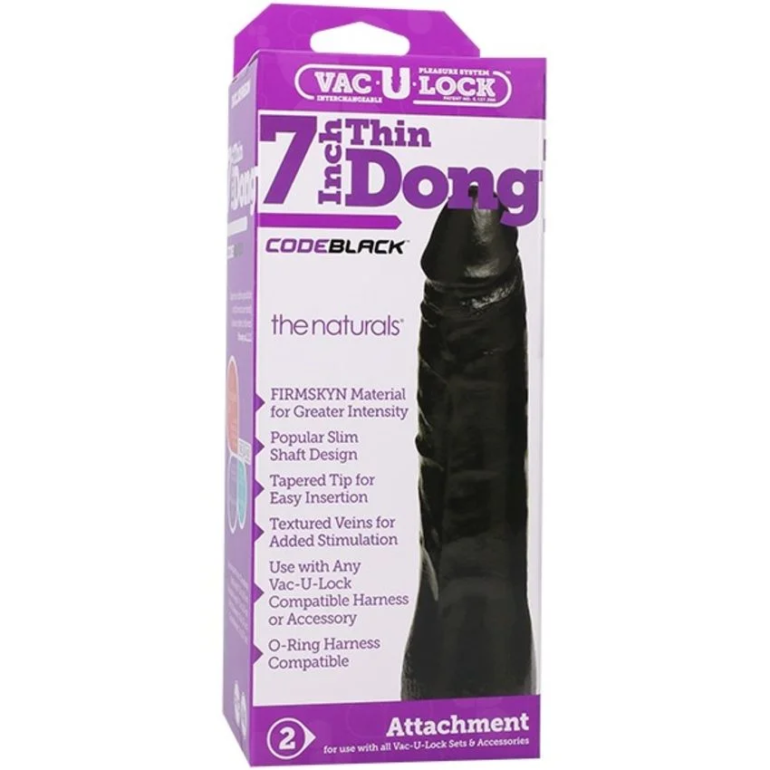 Doc Johnson - VacULock CodeBlack Thin Dong The Naturals - Zwart