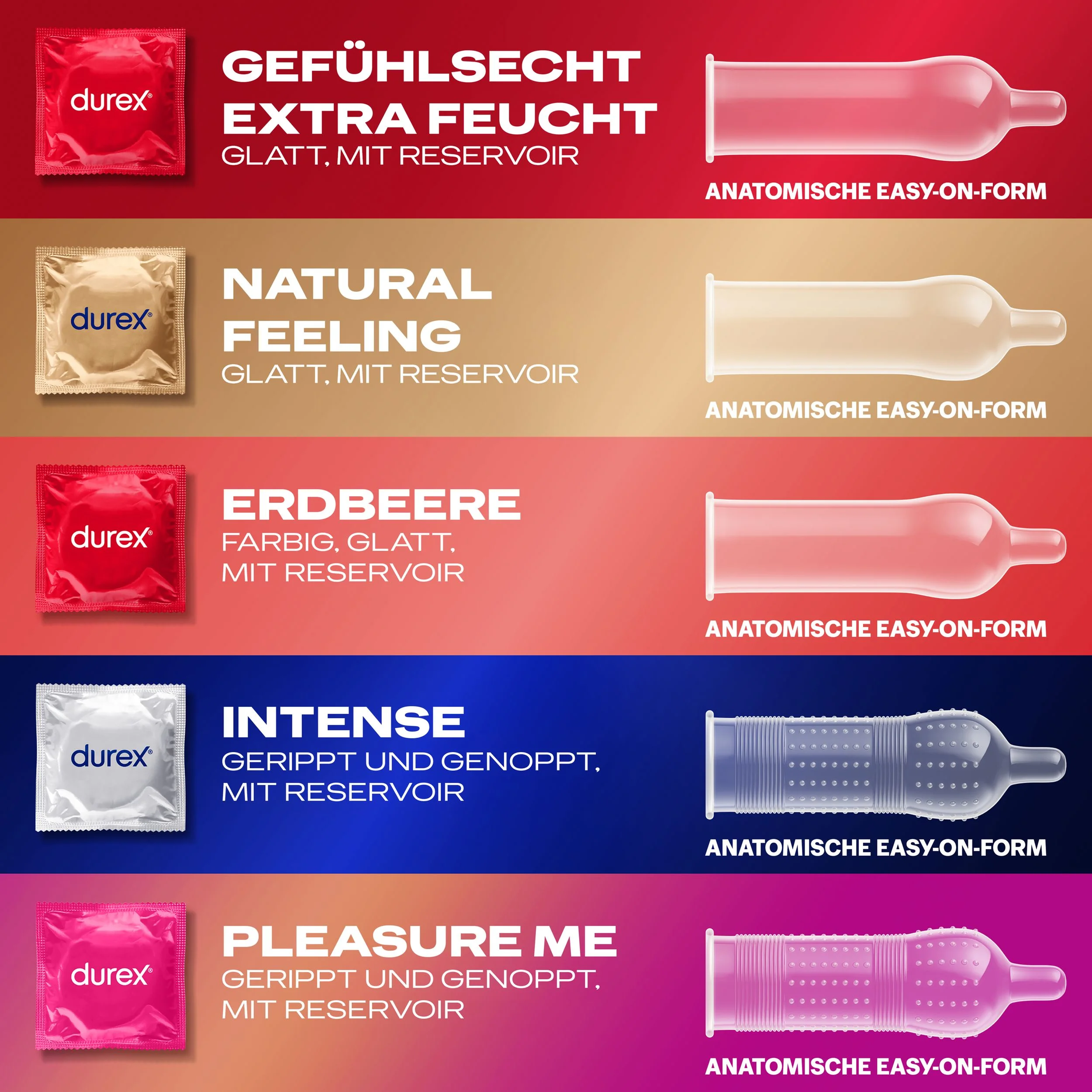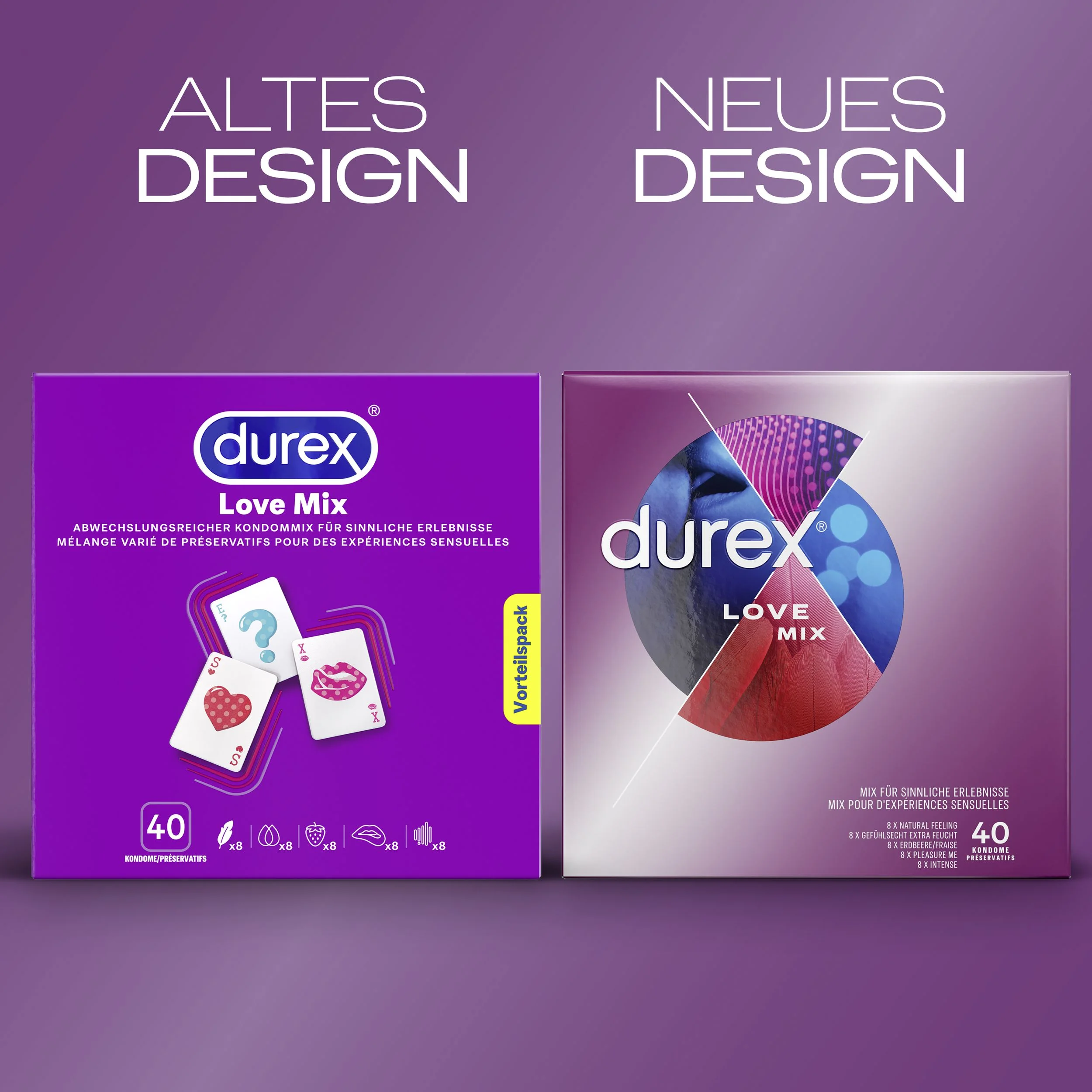 - Beschrijving Meer variatie en plezier bij veilige seks! Deze voordeelverpakking Love Mix bevat 40 Durex-condooms van de vertrouwde beste kwaliteit, verdeeld over 5 spannende varianten: 8 x Gevoels echt Ultra – voor een natuurlijk gevoel 8 x Gevoels echt Extra Vochtig – met extra glijmiddel voor soepel plezier 8… Meer