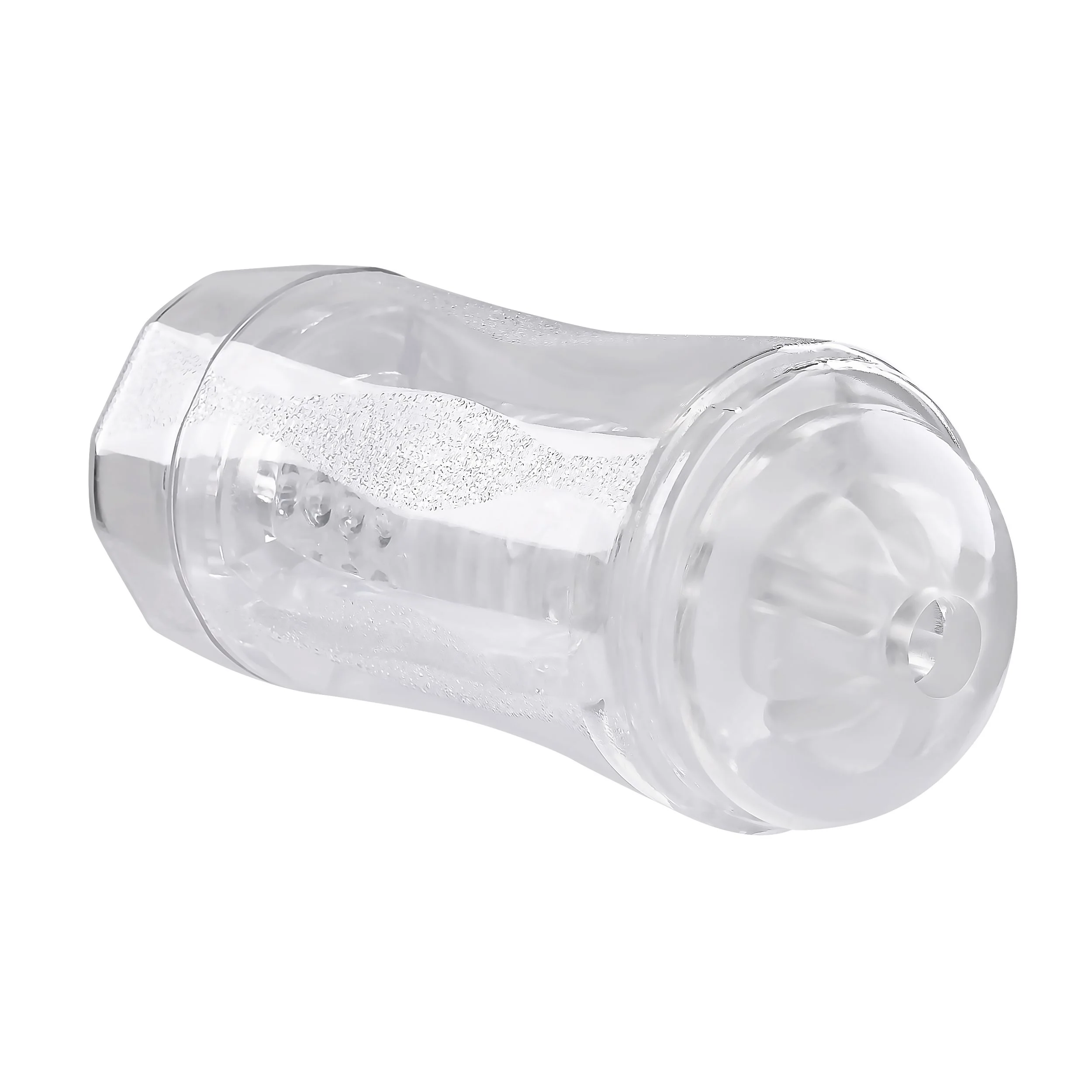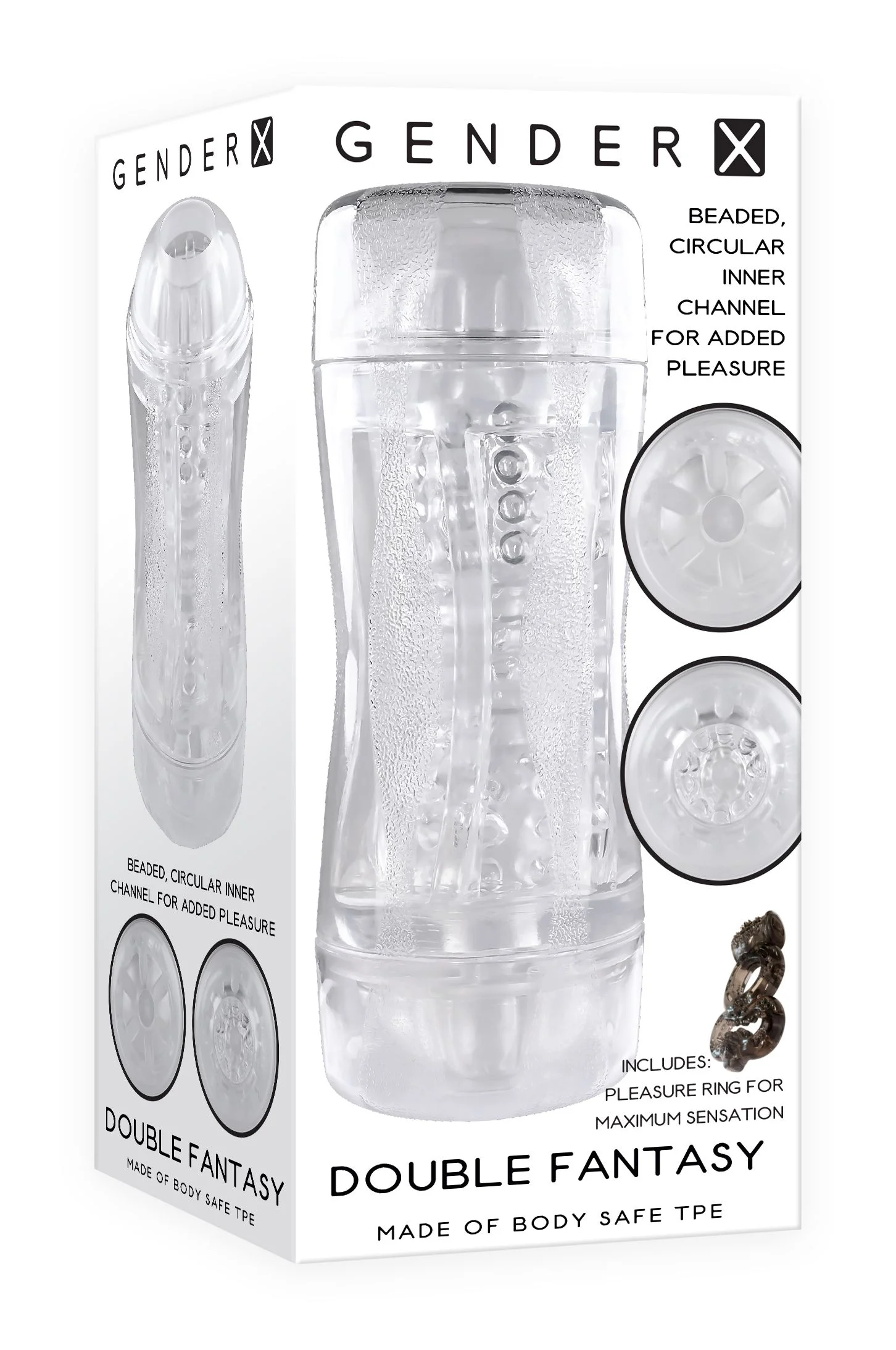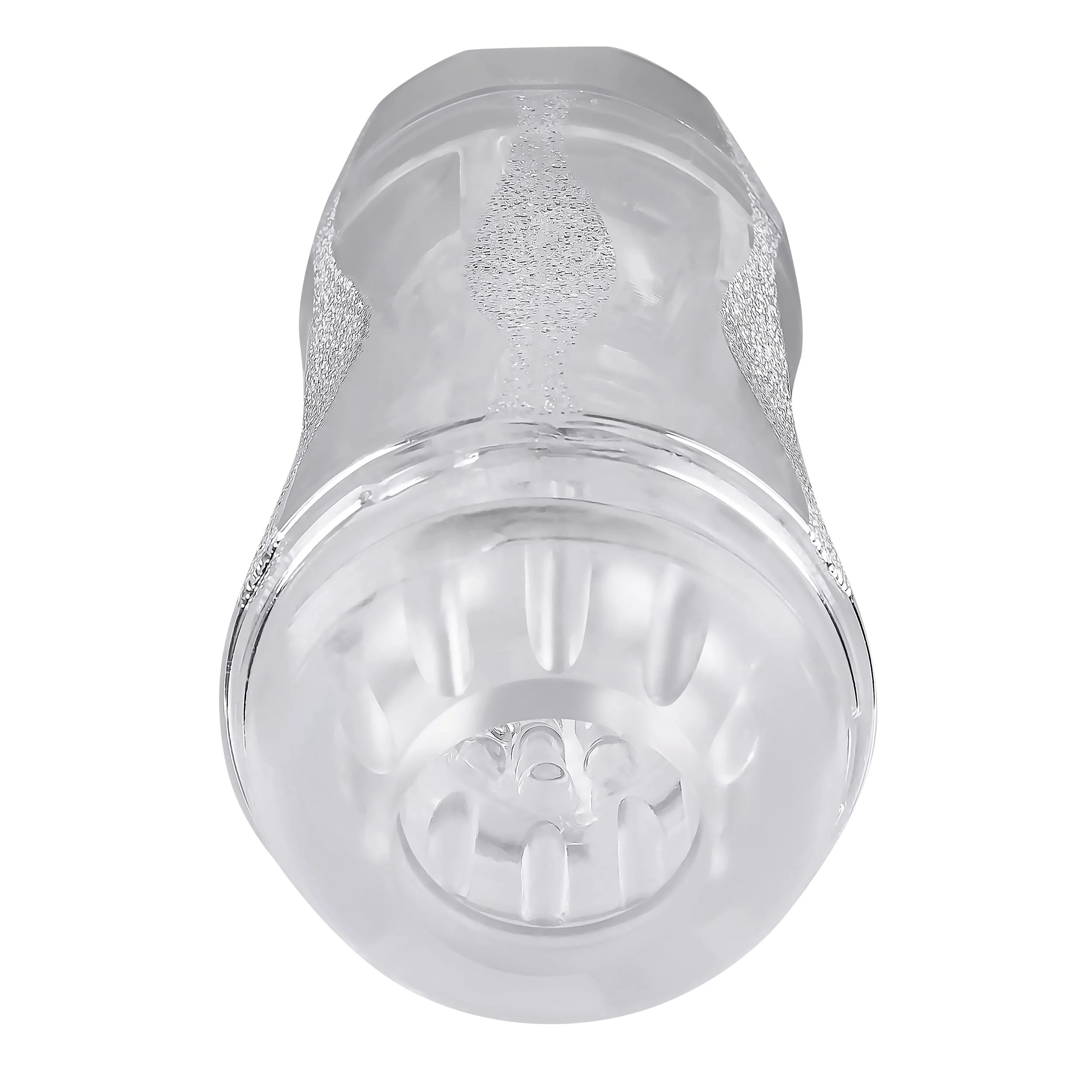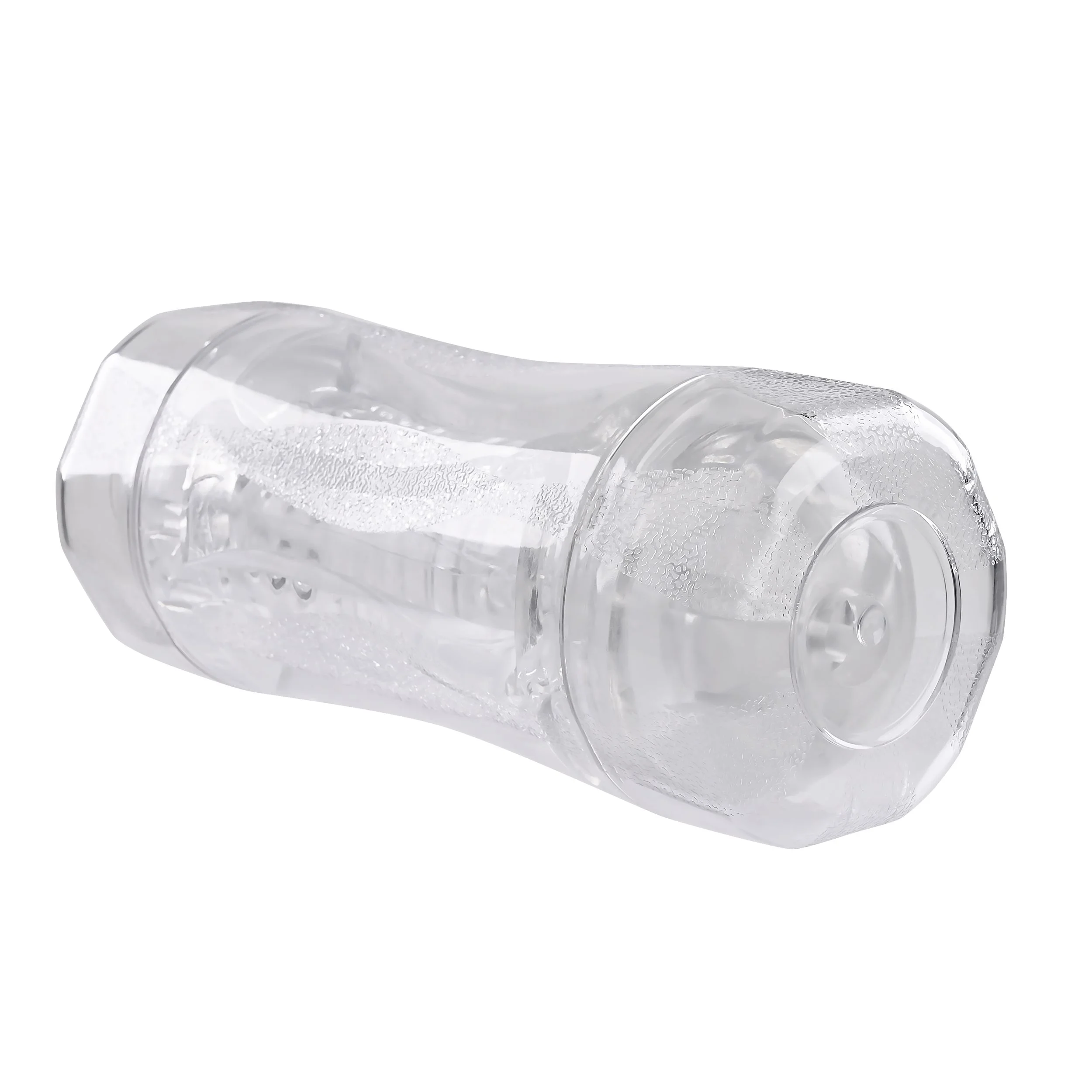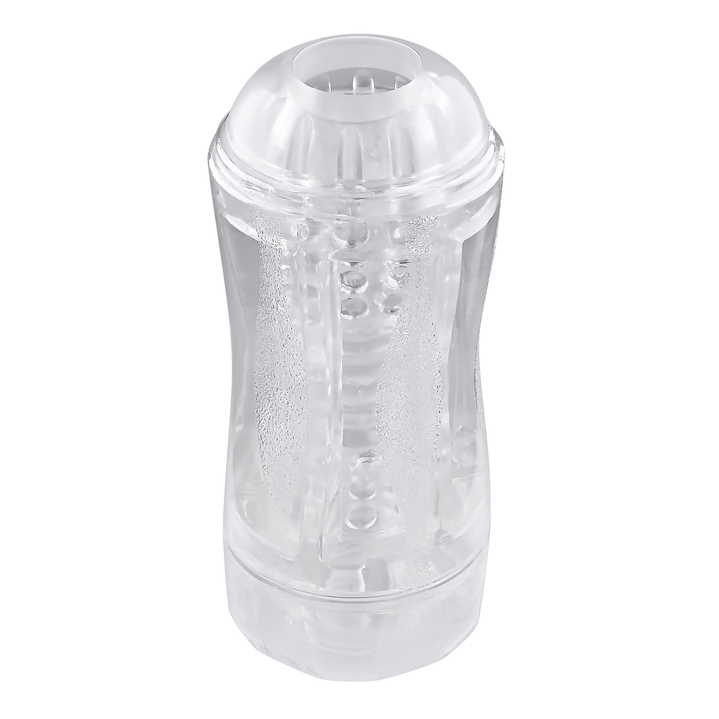 Ervaar plezier als nooit tevoren met deze transparante dubbelzijdige masturbator. Het biedt twee verschillende inloopmaten (strak en los) voor een aanpasbaar avontuur in de kamer met kralen. De zachte maar stevige textuur draagt bij aan de sensatie. Bovendien is er een meegeleverde vibrerende ring voor intense stimulatie. De plastic buitenkant heeft een gestructureerde grip en de doppen aan beide uiteinden zorgen voor veilig opbergen. Het is vrij van ftalaten en latex, en de sleeve is gemakkelijk schoon te maken.