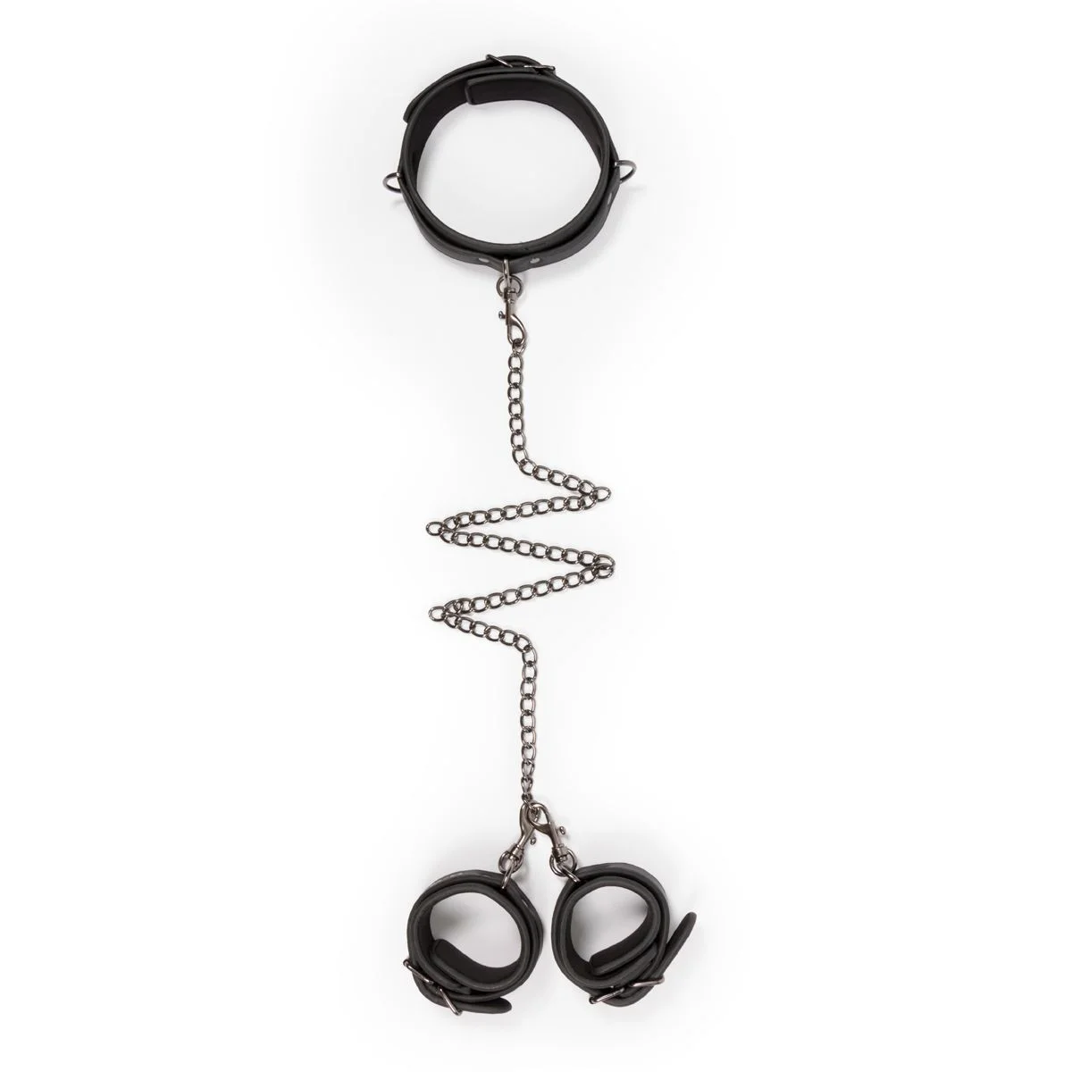 Fetish - Kunstleren Halsband Met Handboeien - Zwart