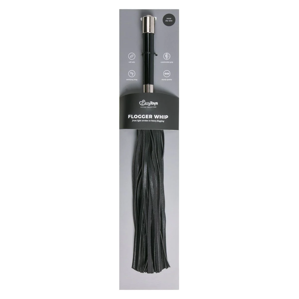 Kinky, zwarte lange flogger met handvat van Fetish Collection. Met dit speeltje maak jij je partner helemaal gek. Streel hem met de zachte, lange strengen over zijn of haar hele lichaam. Sla de intieme plekjes over zodat je geliefde gaat smeken om meer. Maar of je dat gaat geven? De keuze is aan jou. Het mooie handvat heeft een stevige grip en ligt lekker in de hand. Dit speeltje is natuurlijk ook perfect om hardere tikken uit te delen.