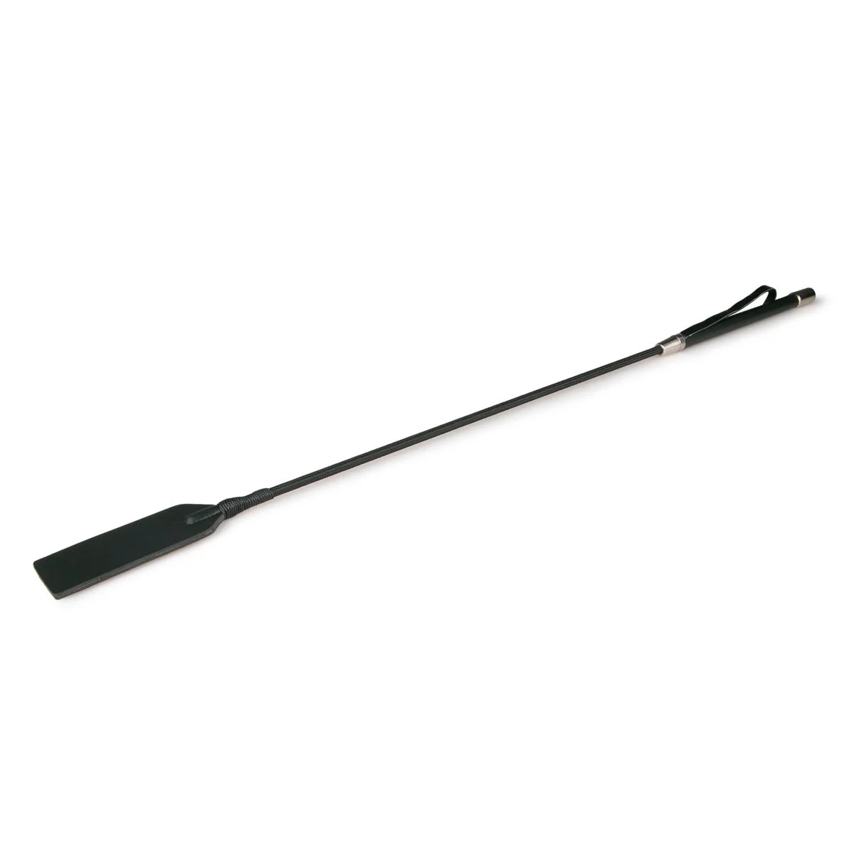 Opwindende, zwarte zweep met lange steel van Fetish Collection. Een goede zweep mag absoluut niet in de collectie van iedere SM-liefhebber ontbreken. Dit zwarte zweepje heeft een elegante look mede door de metalen dopjes aan beide kanten van het handvat. De handige leren lus zorgt voor extra veiligheid. Het handvat ligt comfortabel in de hand, perfect om de ruigste tikken uit te delen. Wanneer ga jij je partner onder handen nemen?