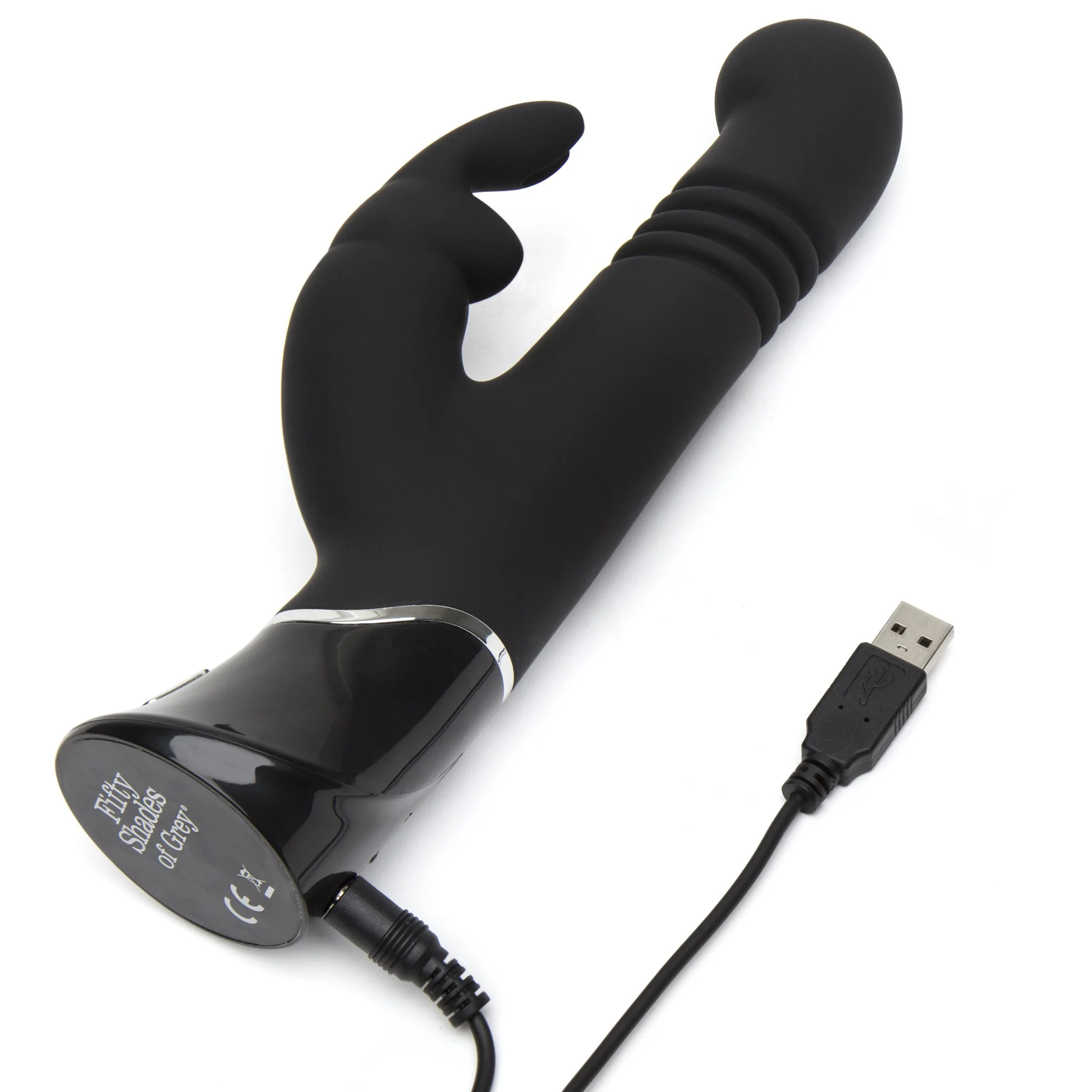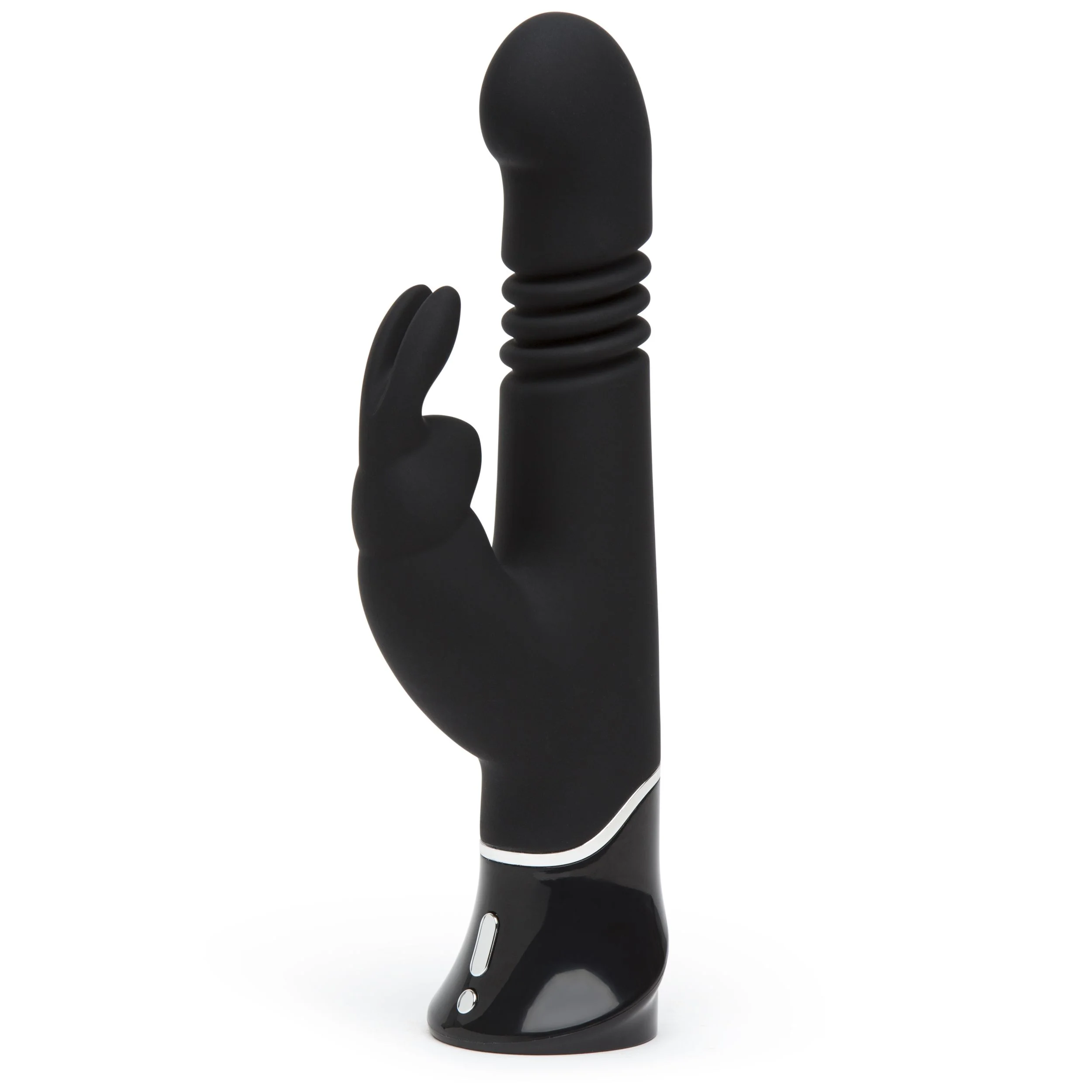Ervaar ultiem dubbel genot met de GREEDY GIRL Thrusting G-Spot Vibrator uit de officiële Fifty Shades of Grey collectie. Deze krachtige vibrator combineert levensechte stotende bewegingen met intense clitorisstimulatie via stevige konijnenoren. De motor beschikt over maar liefst 15 standen: 3 snelheden in de schacht en 12 vibratiestanden in de oortjes. Gemaakt van fluweelzacht siliconen, volledig waterdicht en voorzien van een reisvergrendeling. De vibrator is oplaadbaar via USB en wordt geleverd met een satijnen opbergzakje. Ontworpen voor wie geen genoeg krijgt van diepe, intense stimulatie.