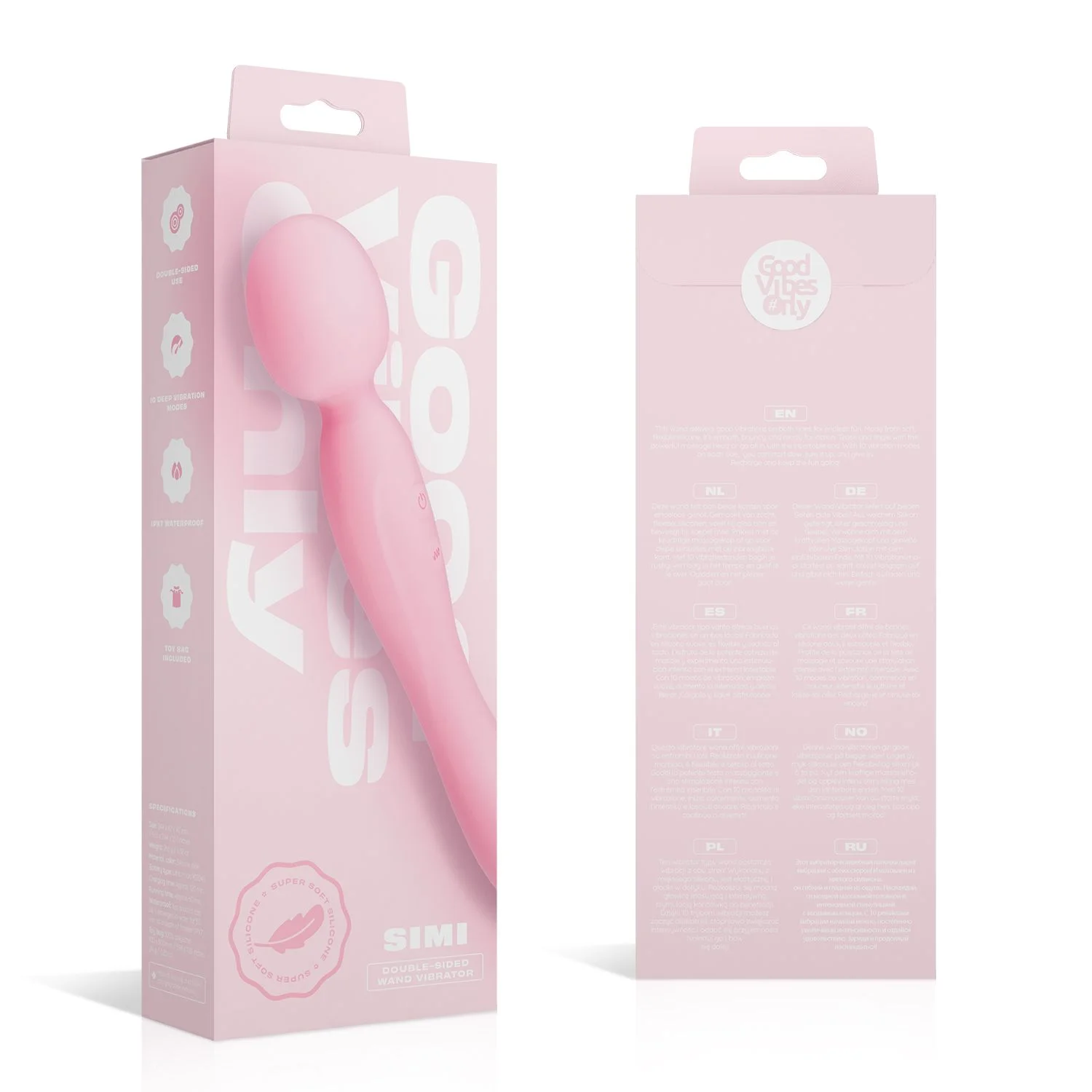 Good Vibes Only - Dubbelzijdige Wand Vibrator - Soft Silicone - Roze