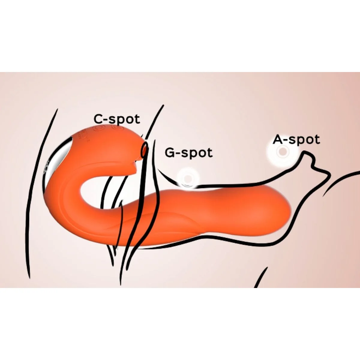 Dankzij de ergonomische vormgeving sluit het ontwerp logisch aan op de anatomie. De zorgvuldig gekozen afstand tussen de interne stimulatie en de externe tongbeweging is afgestemd op veelvoorkomende lichaamsvormen, wat bijdraagt aan een harmonieuze ervaring waarbij beide stimulatiepunten elkaar versterken. Door het model eenvoudig te draaien, kun je bovendien experimenteren met alternatieve contactzones en nieuwe sensaties ontdekken.