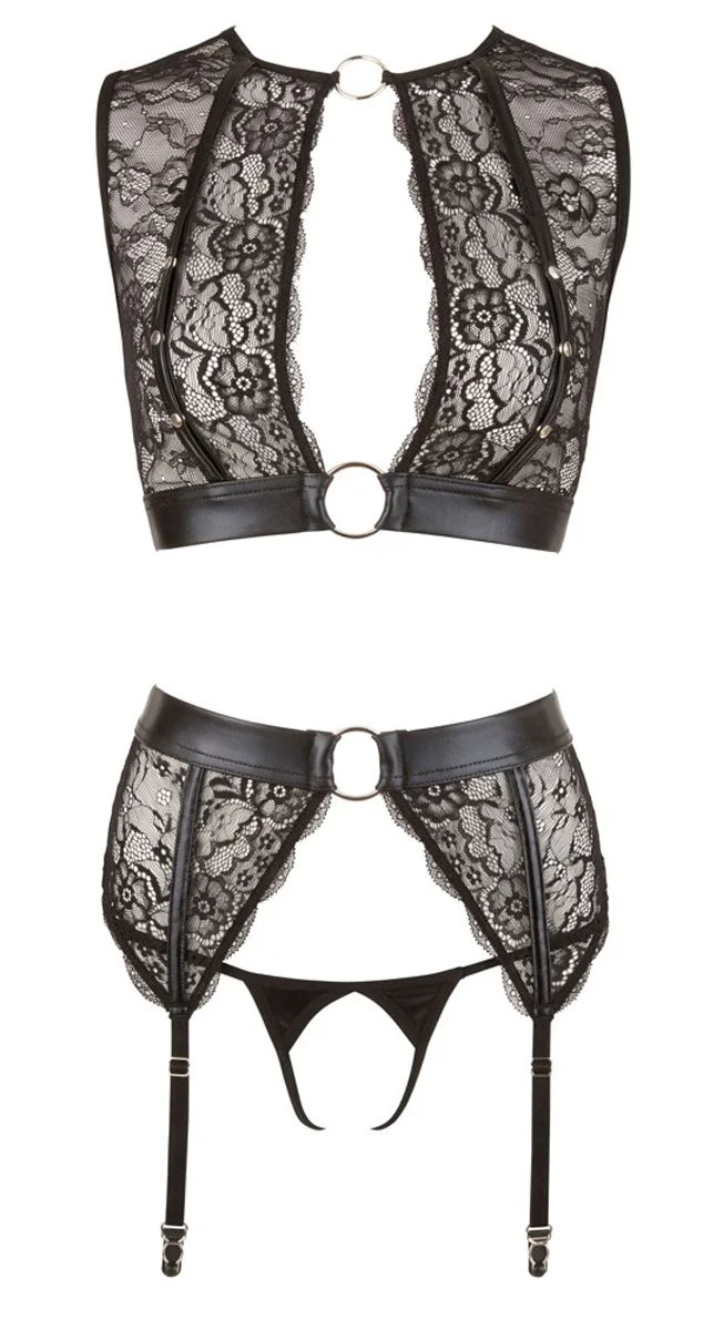 Cottelli Collection - Bondage Lingerieset Met Jarretels