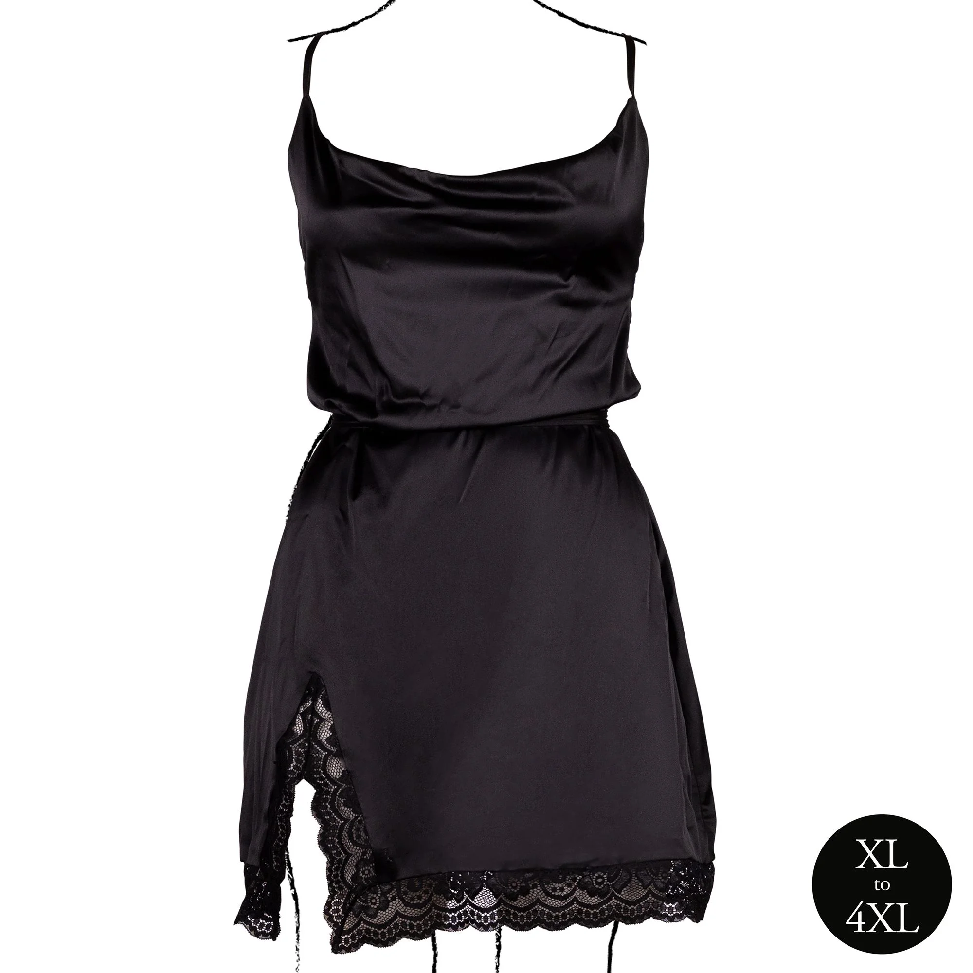 Le Desir – Zijden Jurk met Kruisbanden en Split, Open Rug, Queen Size - Zwa