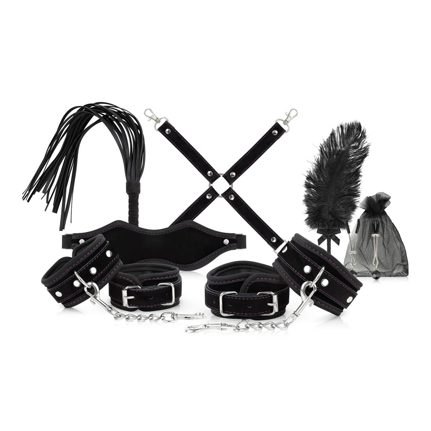 Begin een heel nieuw stout avontuur samen en geef de Kinky Me Softly set cadeau aan je partner! In deze starterset vind je 7 verschillende bondage producten voor een opwindende avond in de slaapkamer. De set is zeer geschikt voor stellen die geïnteresseerd zijn in BDSM, maar nog weinig ervaring hebben. De set bestaat uit een handboeienset, een enkelboeienset, een blinddoek, een zweepje, een kietelaar, tepelklemmen, een hogtie en een handige opbergtas (41x30 cm). De boeien zijn ruim verstelbaar.