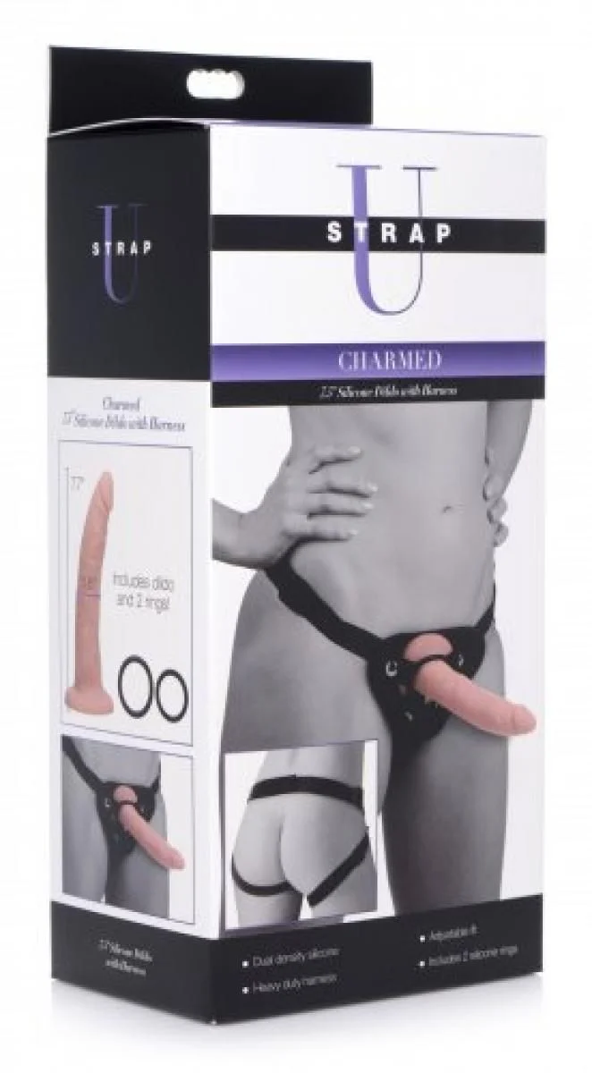 Geniet van een heerlijke pegging ervaring met deze zachte siliconen dildo met bijpassend harnas! Deze dildo heeft een realistisch uiterlijk, een fijn formaat van 19.5 cm en een zuignap aan de onderkant zodat je ook eventueel handsfree kunt genieten. Het materiaal is zacht siliconen en voelt natuurlijk aan. De set wordt inclusief 2 siliconen ringen geleverd zodat je kunt variëren met andere maten dildo's. Het harnas is van stevig PU materiaal en verstelbaar. Door het harnas zit de dildo goed vast en geniet jouw partner van een heerlijke natuurlijke penetratie. Gebruik glijmiddel op waterbasis voor een comfortabel gebruik.