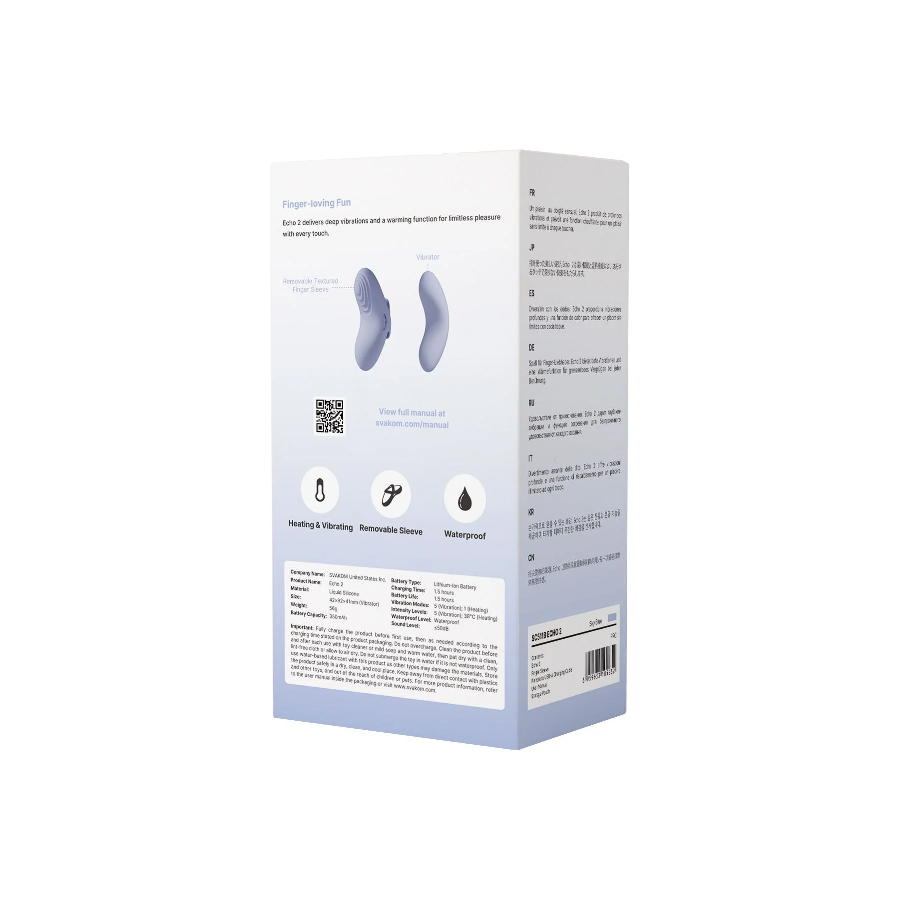 Productinformatie "SVAKOM - Echo 2 Vingervibrator - Sky Blue"