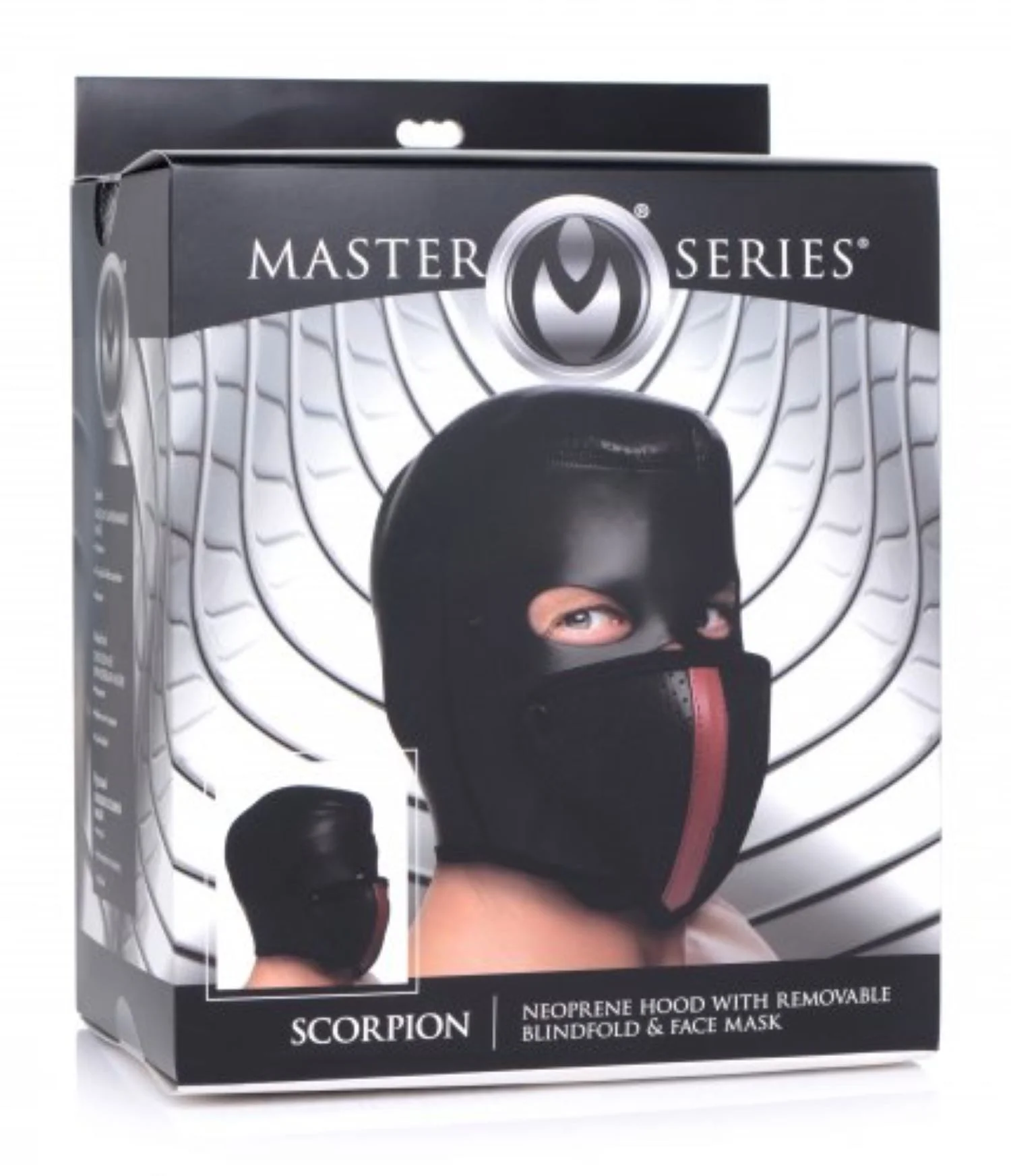 Productinformatie "Scorpion Hood Met Afneembare Blinddoek En Mondmasker"