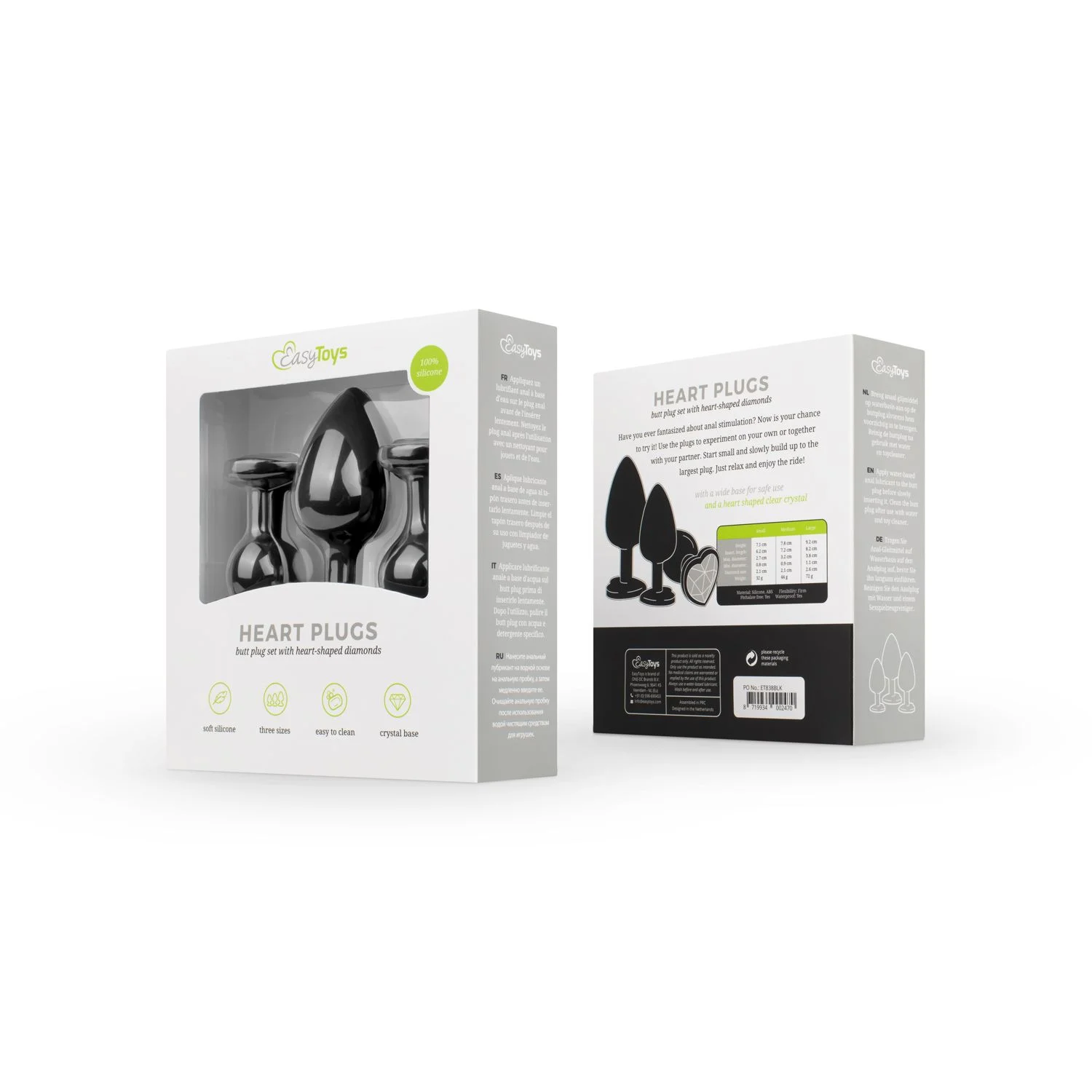 Productinformatie "Siliconen Buttplug Set Met Diamantjes - Hart"