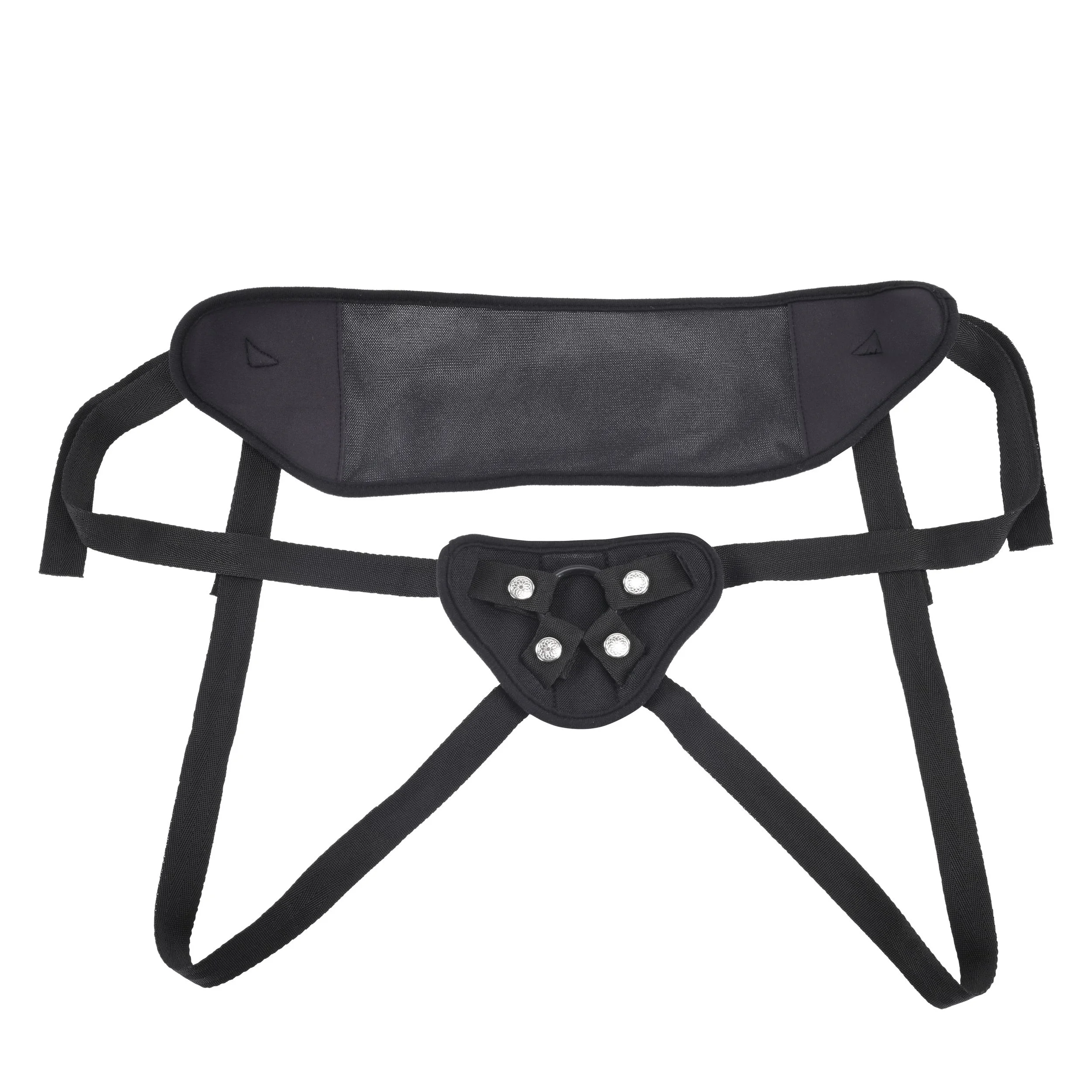 Beschrijving Verhoog je uithoudingsvermogen in superieur comfort met de Ademende Strap-On. Ontworpen met een superlichtgewicht, ademende mesh-stof die je koel houdt, zelfs wanneer de dingen verhitten. De Ademende Strap-On heeft padding langs de heupen, demping aan de voorkant om je dildo te ondersteunen en een gestikte zak om gemakkelijk een bullet vibrator toe te voegen. Verstelbare banden passen tot 60" tailles en de O-ring is verwisselbaar om elke dildo-maat te accommoderen. Voel je empowered om te spelen op elke intensiteit en breng je spel naar opwindende nieuwe niveaus. Kenmerken: 4-weg verstelbare banden passen tot 60" (152 cm) heupen Lichtgewicht, ademende mesh-stof Gestikte centrale zak voor bullet vibe compatibiliteit Productdetails Kleur: Zwart