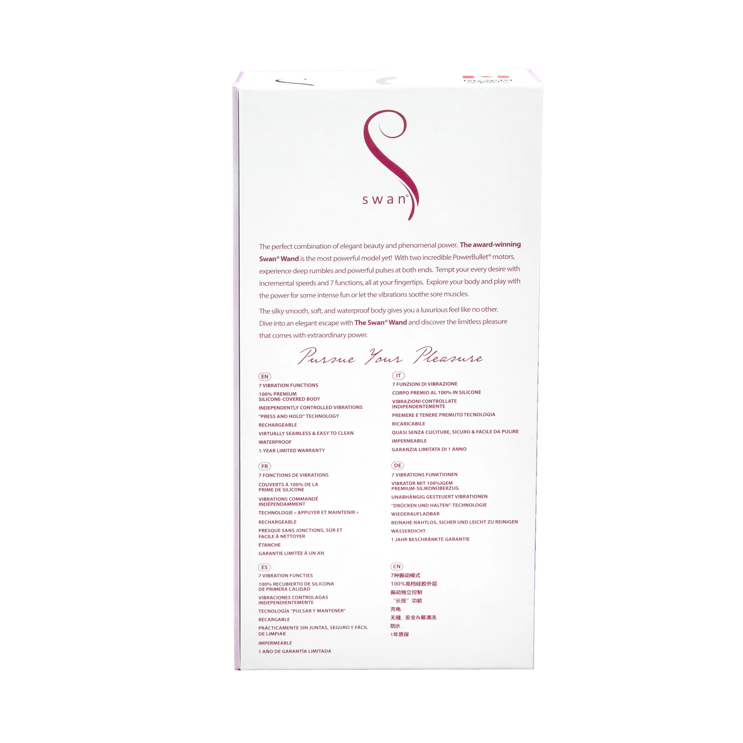 Geniet van intense vibraties met de Swan Wand vibrator! Deze vibrator heeft 2 krachtige motoren en is door zijn gebogen top perfect voor G-spot stimulatie. Schakel eenvoudig tussen de verschillende snelheden door het ingedrukt houden van de knop. Voel hoe de vibraties langzaam intenser worden! Je schakelt de Swan uit met 1 druk op dezelfde knop. Het materiaal is van lichaamsveilig siliconen voor een comfortabel gevoel. Daarnaast is de Swan waterproof en voorzien van het travel lock systeem. Dit systeem voorkomt dat de vibrator plotseling aan gaat in de tas of koffer. Maak je toy na gebruik weer schoon met lauwwarm water en een toycleaner. De Swan is gemakkelijk weer op te laden met de meegeleverde USB-kabel.