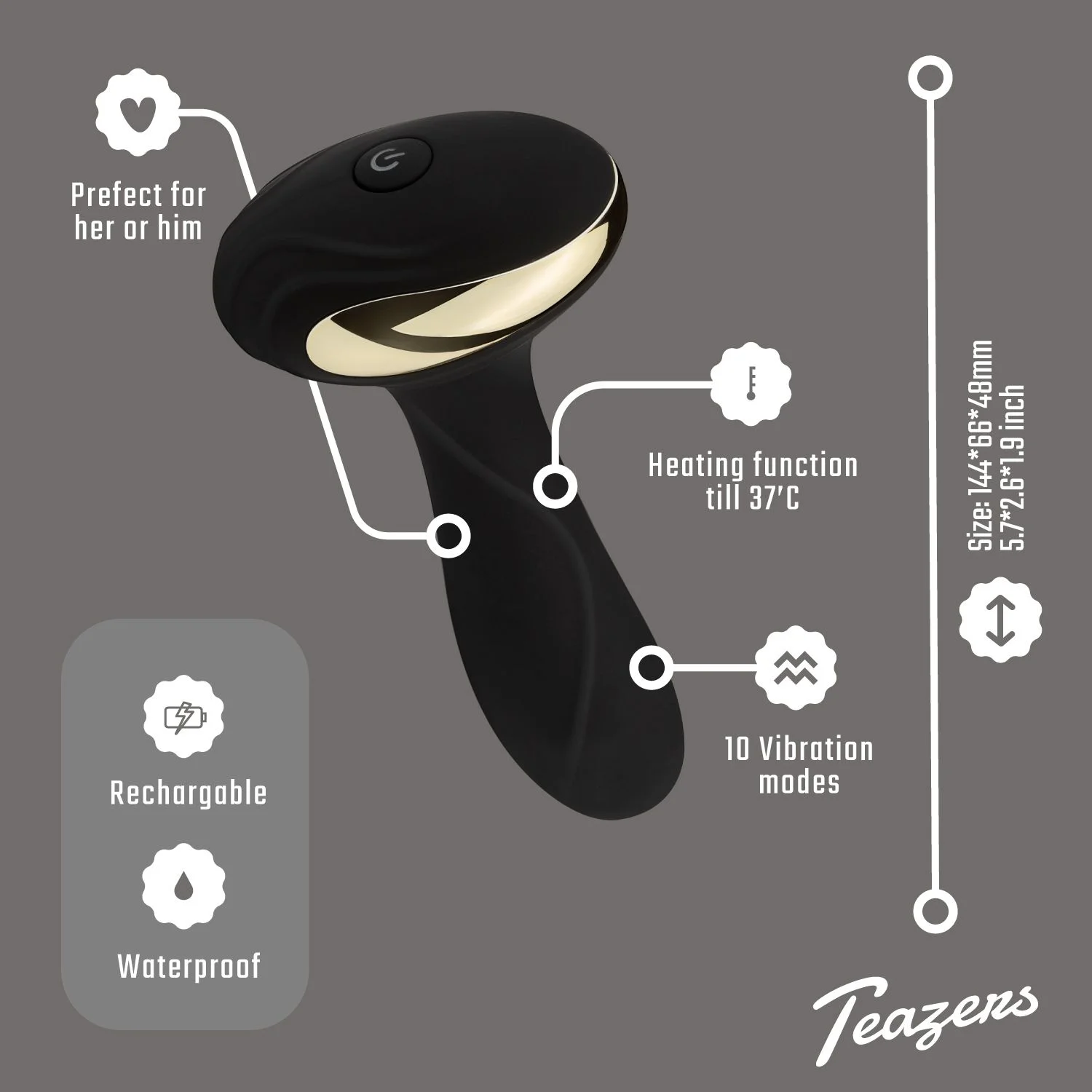 Productinformatie "Teazers – Heat Of The Moment Buttplug Vibrator – Zwart"