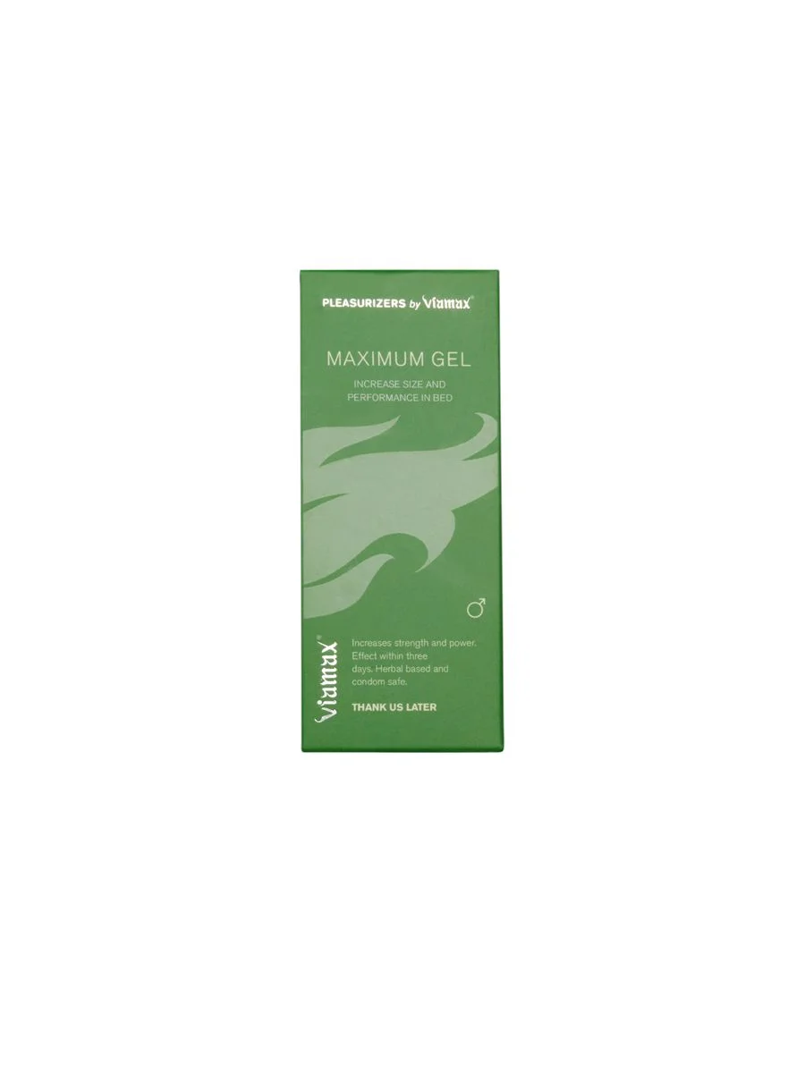 Viamax Maximum Gel stimuleert de bloedcirculatie in de penis. Hierdoor verbetert het uithoudingsvermogen en wordt de gevoeligheid van de penis verhoogd. Elke aanraking voelt intenser aan en lustgevoelens worden versterkt. De gel is veilig te gebruiken in combinatie met condooms.  Let op: vermijd contact met de ogen. Niet geschikt voor oraal gebruik. Stop het gebruik bij roodheid, een branderig of een pijnlijk gevoel. Gebruik het product niet op een beschadigde huid. Het gewenste resultaat kan per persoon verschillen. Ingrediënten: Aqua, Red Kwao Krua Root Extract (Butea superba), Propylene Glycol, Alcohol, Peg-40 Hydrogenated Castor Oil (Ricinus communis), Carbomer, Phenoxyethanol, Jojoba Seed Oil (Simmondsia chinensis), Sodium Hydroxide, Disodium Edta, Methylparaben, Propylparaben, Sodium Metabisulfite, Lecithin, Tocopheryl Acetate, Caprylic/Capric Triglyceride, Ubiquinone, Diisopropyl Adipate and Glycerine.