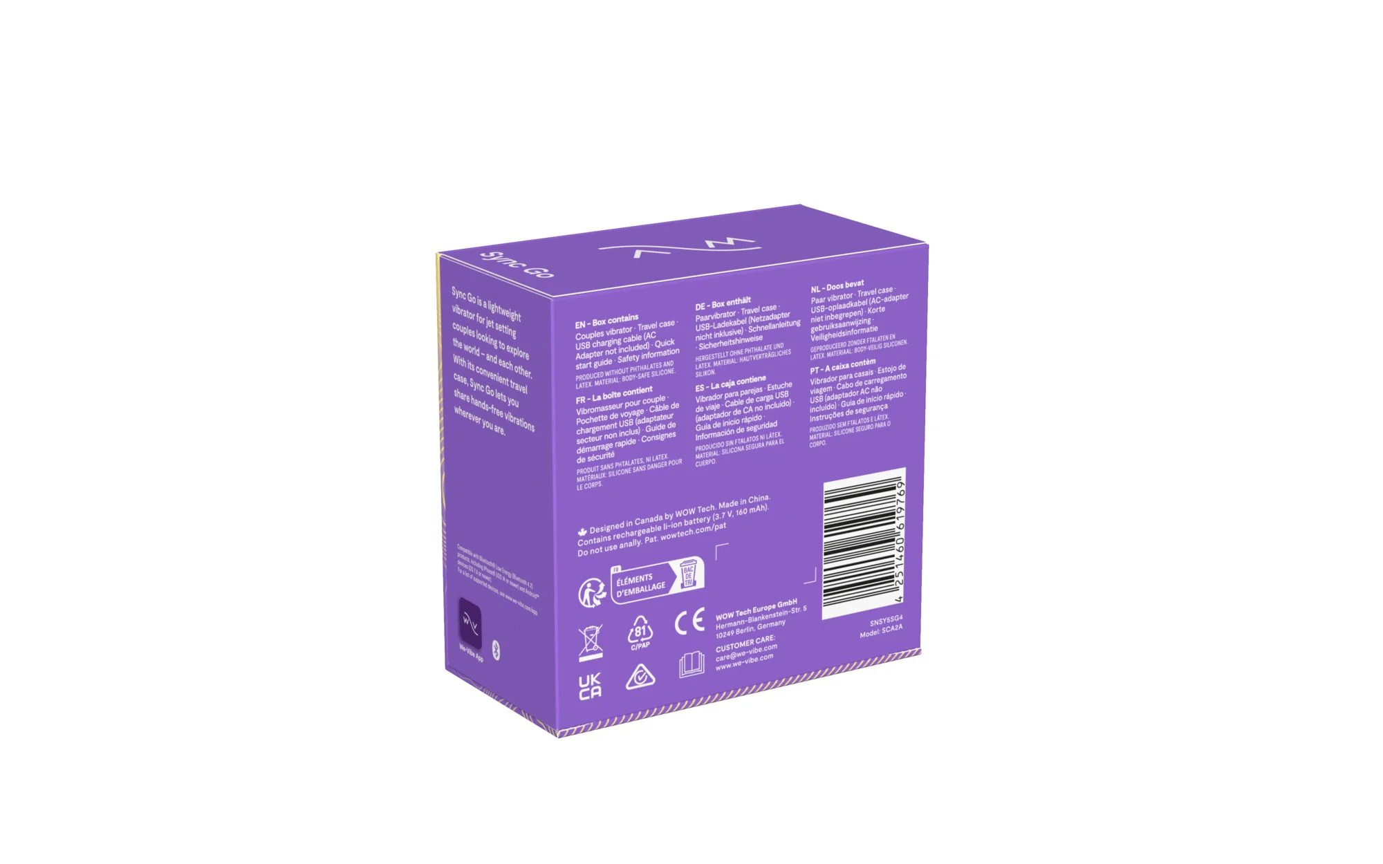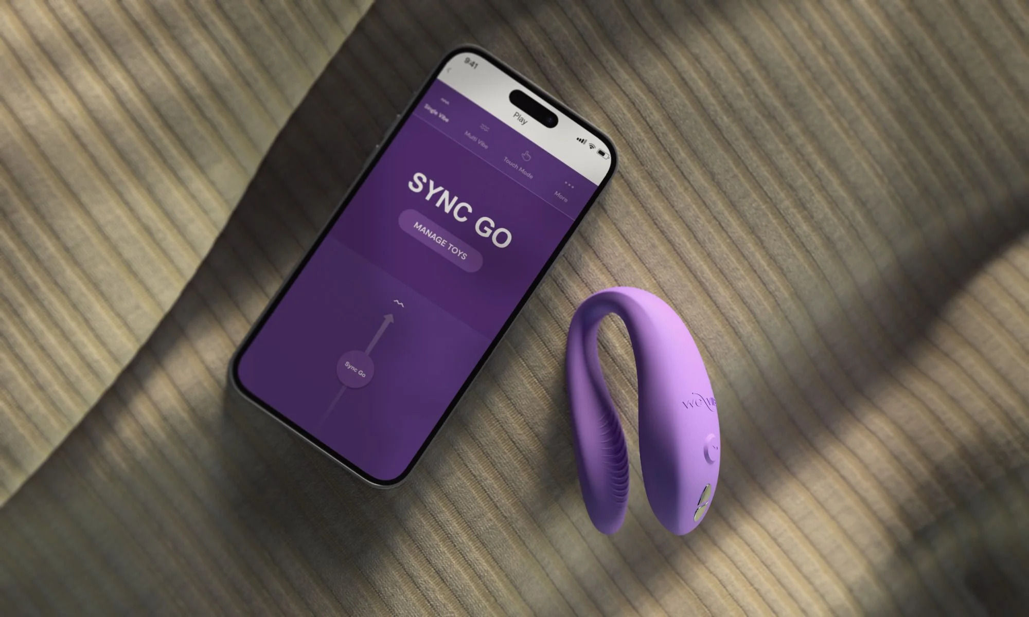 - Beschrijving Compact formaat maakt de duo vibrator direct geschikt voor koppels die bewegingsvrijheid willen. We-Vibe - Sync Go met App - Paars zit tijdens penetratie op zijn plek en stimuleert tegelijk de clitoris en vagina. Dat maakt dit koppel speeltje interessant voor starters die samen willen ontdekken, zo… Meer