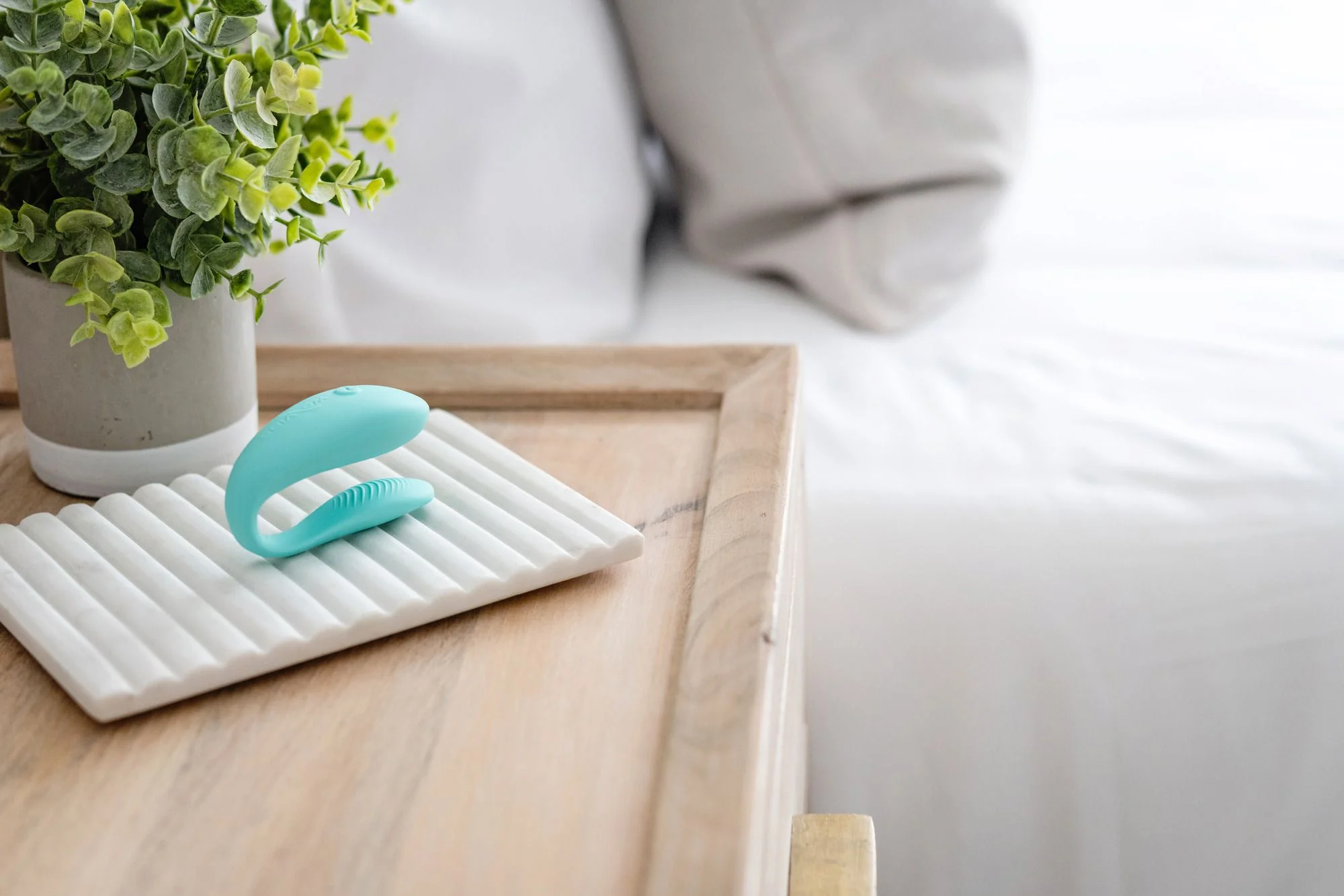 Bedienen gaat eenvoudig via de knop op de toy zelf of op afstand via de app. Dat geeft veel vrijheid in hoe je speelt, thuis of juist wanneer je niet bij elkaar bent. Via de app kies je verschillende vibratiestanden en stel je patronen samen die passen bij jullie tempo. Zo maak je van een duo vibrator al snel iets persoonlijks. De trillingen zijn variabel, waardoor je rustig kunt opbouwen of sneller kunt wisselen. Omdat het model tijdens penetratie te gebruiken is, blijft de aandacht niet bij één persoon liggen. Beide partners merken direct wat de vibraties doen. Voor solo gebruik is deze koppelvibrator ook interessant, juist als je graag interne en uitwendige stimulatie tegelijk combineert. De turquoise kleur geeft het geheel een frisse uitstraling, zonder dat het ontwerp druk oogt.