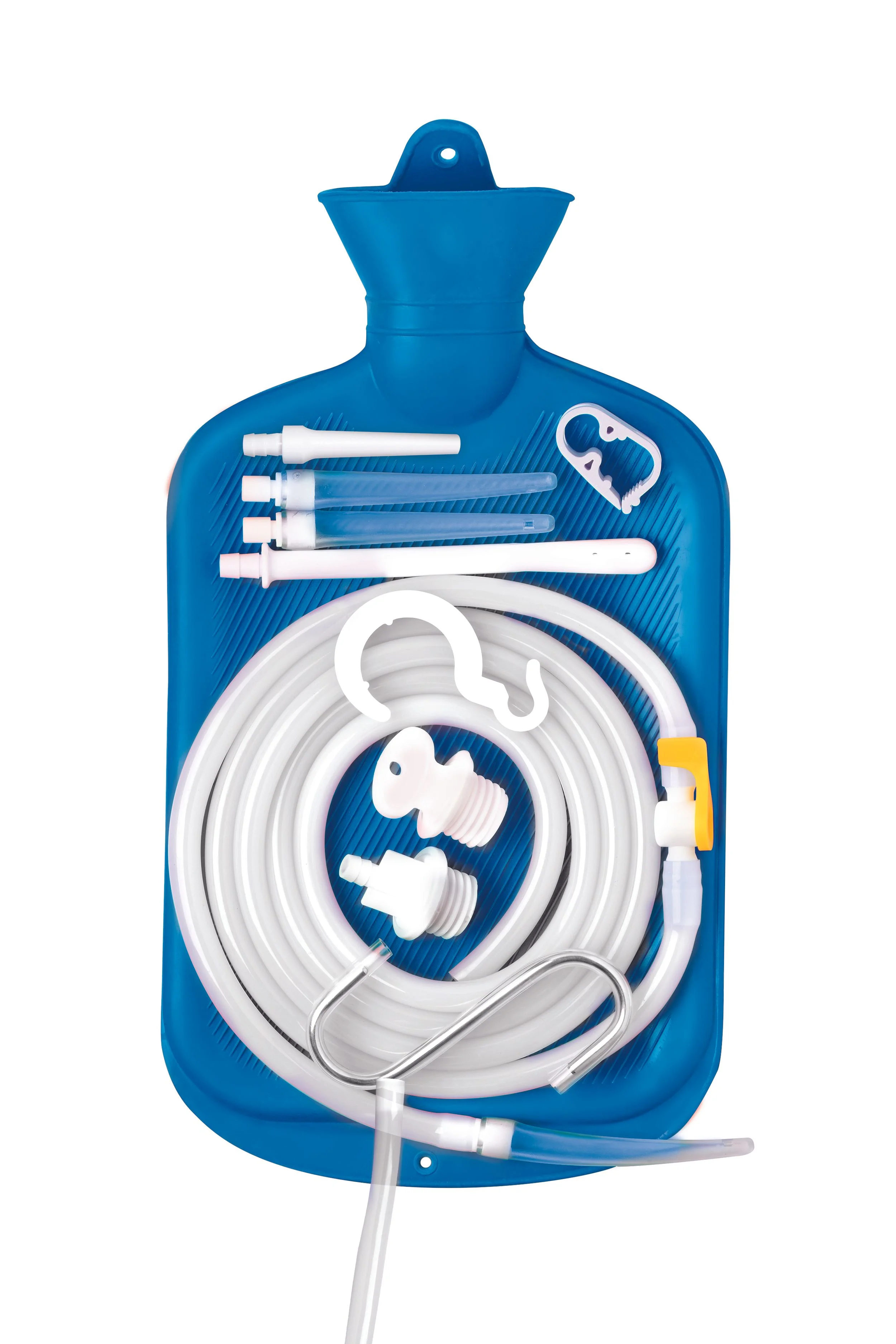 Reinig jezelf makkelijk met deze Deluxe Shower Enema Kit! Voel je frisser dan ooit tevoren en geniet van het volle gevoel dat je krijgt van de vloeistof die voor een heerlijke druk zorgt. De kit heeft alles wat je nodig hebt om te beginnen en bevat één zak van 1,85 liter, één 150 cm lange slang met stroomklep, drie flexibele tips, één taps toelopende tip, één spuitmondstuk, één roestvrijstalen haak, één plastic haak, één stroomklem, één stopper, één stopper met slangadapter. Beheer eenvoudig de waterstroom met de regelklep op de slang, zodat je het rustig aan kunt doen terwijl je jezelf volledig vult. Iedereen heeft zijn voorkeuren. Kies tussen flexibele, taps toelopende en spuitmondstukken. Terwijl het boven je hangt, kun je genieten van koffieklisma's, zoutwaterklisma's of gewoon een warmwaterreiniging voor zowel gezondheid als plezier! Houd jezelf fris en schoon zonder gedoe en gebruik hem in je eigen douche voor zowel privacy als comfort! Alle gebruikte metalen zijn nikkelvrij voor de gevoelige huid. Er wordt voornamelijk plastic en rubber gebruikt, zodat je veilig een siliconenglijmiddel kunt gebruiken om te helpen bij een soepele, gladde inbreng. Spoel daarna af met warm water en zeep en laat het aan de lucht drogen.